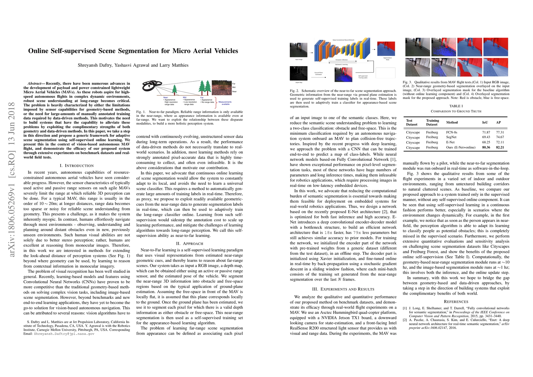 This paper proposes a self-supervised online learning framework for adaptive scene segmentation to aid in the autonomous navigation of Micro Aerial Vehicles (MAVs) in complex environments. The approach aims to combine the strengths of geometry-based and data-driven methods, reducing reliance on large annotated datasets and sensor limitations.