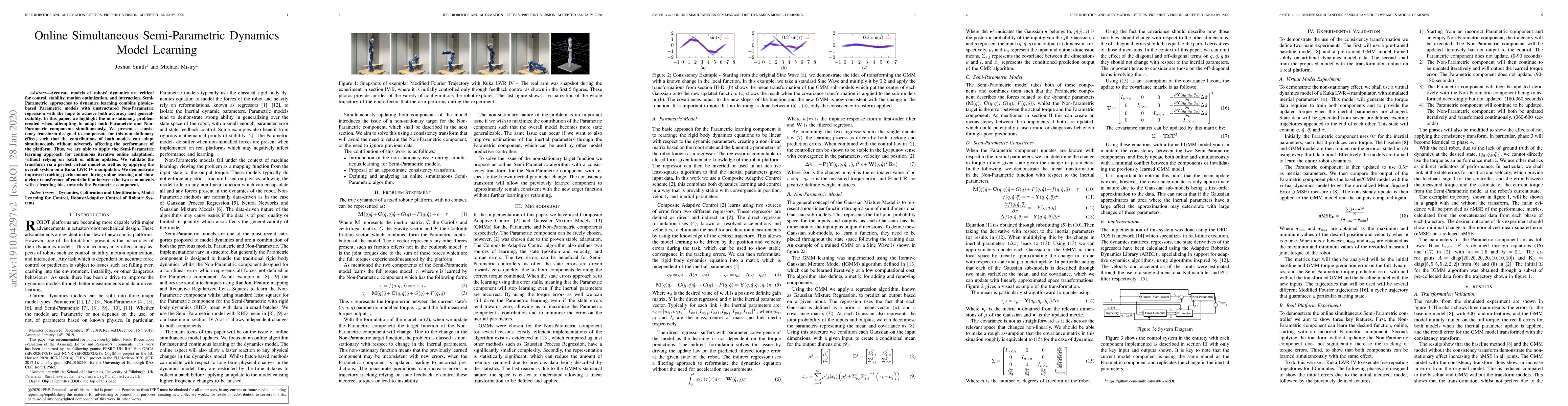 This paper proposes a method for online simultaneous adaptation of Semi-Parametric dynamics models for robots, addressing the non-stationary issue that arises when updating both Parametric and Non-Parametric components together. The introduced consistency transform enables continuous iterative learning without degrading performance.