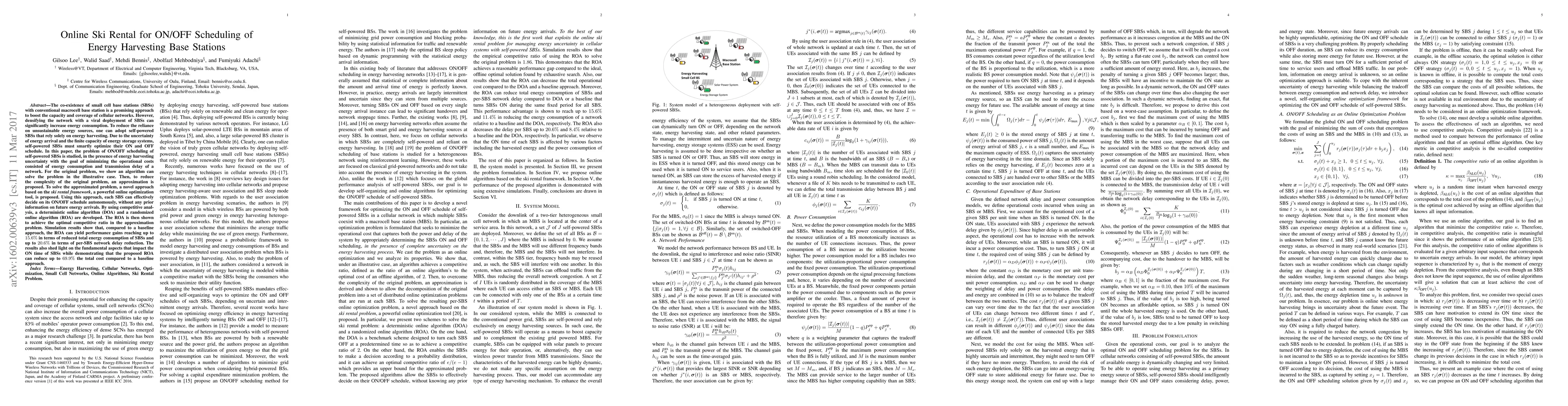 The co-existence of small cell base stations (SBSs) with conventional macrocell base station is a promising approach to boost the capacity and coverage of cellular networks. However, densifying the network with a viral deployment of SBSs can significantly increase energy consumption. To reduce the reliance on unsustainable energy sources, one can adopt self-powered SBSs that rely solely on energy harvesting. Due to the uncertainty of energy arrival and the finite capacity of energy storage systems, self-powered SBSs must smartly optimize their ON and OFF schedule. In this paper, the problem of ON/OFF scheduling of self-powered SBSs is studied, in the presence of energy harvesting uncertainty with the goal of minimizing the operational costs consisted of energy consumption and transmission delay of a network. For the original problem, we show an algorithm can solve the problem in the illustrative case. To reduce the complexity of the original problem, an approximation is proposed. To solve the approximated problem, a novel approach based on the ski rental framework, a powerful online optimization tool, is proposed. Using this approach, each SBS can effectively decide on its ON/OFF schedule autonomously, without any prior information on future energy arrivals. By using competitive analysis, a deterministic online algorithm (DOA) and a randomized online algorithm (ROA) are developed. ROA is shown to achieve the optimal competitive ratio in the approximation problem. Simulation results show that, compared to a baseline approach, the ROA can yield performance gains reaching up to 15.6% in terms of reduced total energy consumption of SBSs and up to 20.6% in terms of per-SBS network delay reduction. The results shed light on the fundamental aspects that impact the ON time of SBSs while demonstrating that the proposed ROA can reduce up to 69.9% the total cost compared to a baseline approach.