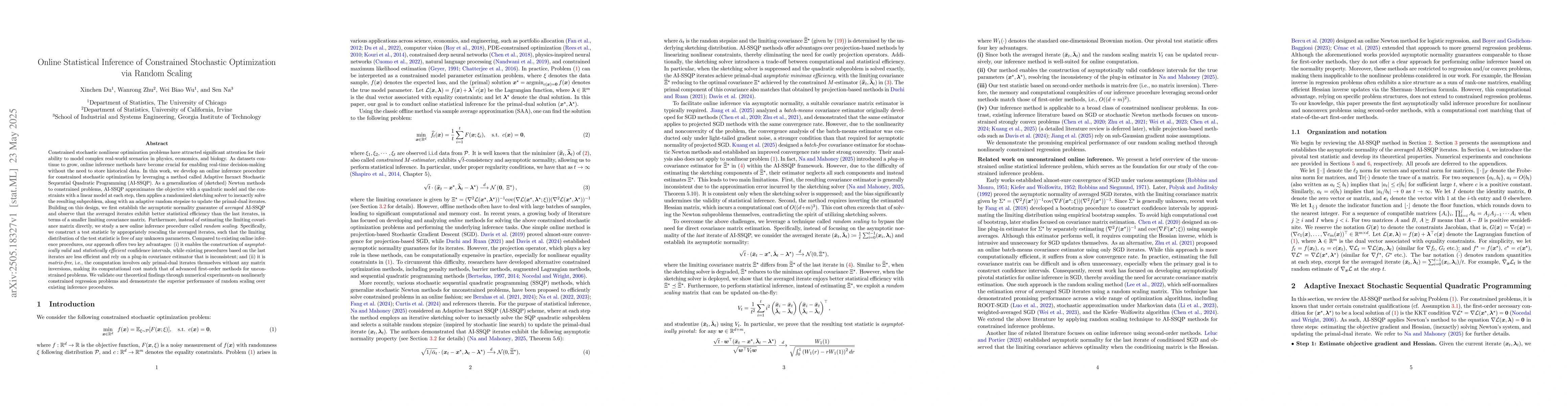 This research paper proposes a new method called random scaling for online statistical inference in constrained stochastic optimization, offering advantages over existing methods including asymptotically valid confidence intervals and matrix-free computation.