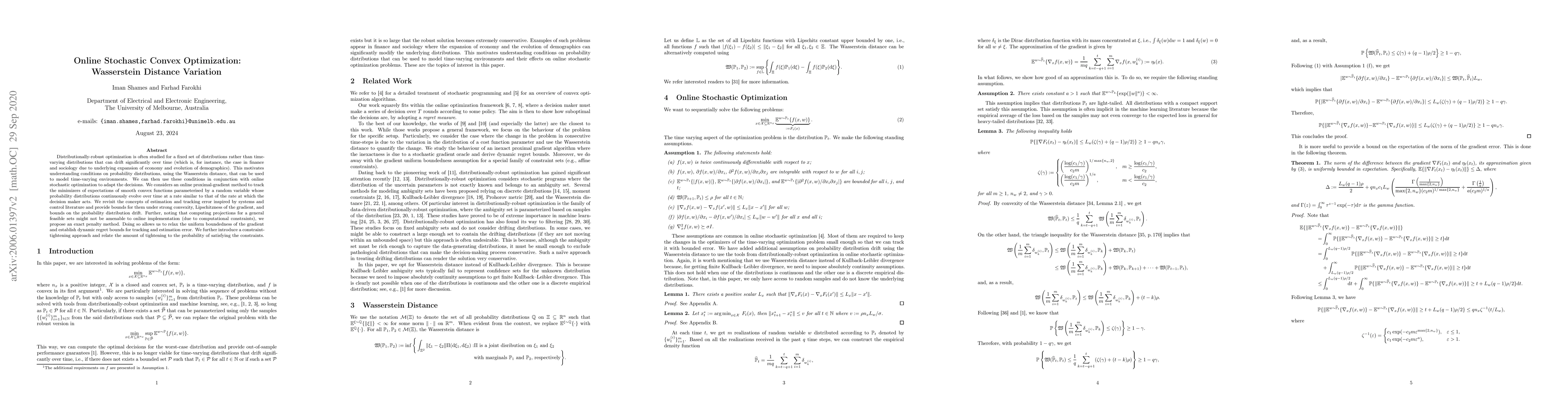 Researchers developed an online optimization method to track minimizers of smooth convex functions in time-varying environments, using the Wasserstein distance variation for distributionally-robust optimization.