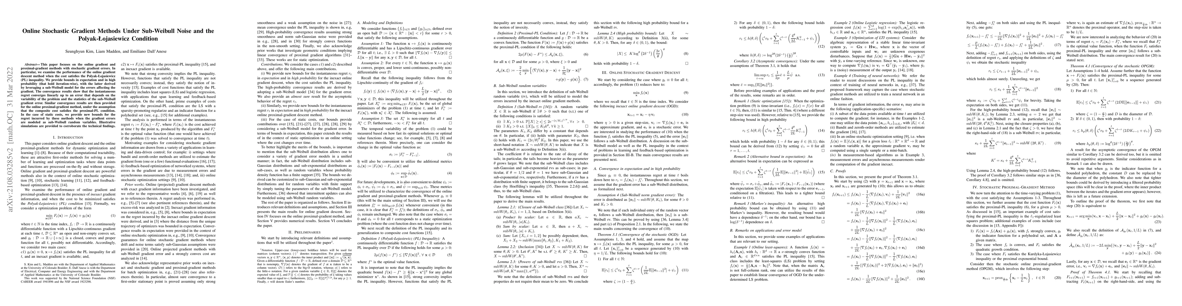 This paper investigates online gradient and proximal-gradient methods under stochastic gradient errors, focusing on the Polyak-{\L}ojasiewicz condition. It provides convergence bounds for these methods, leveraging a sub-Weibull model for gradient errors, and corroborates findings with simulations.