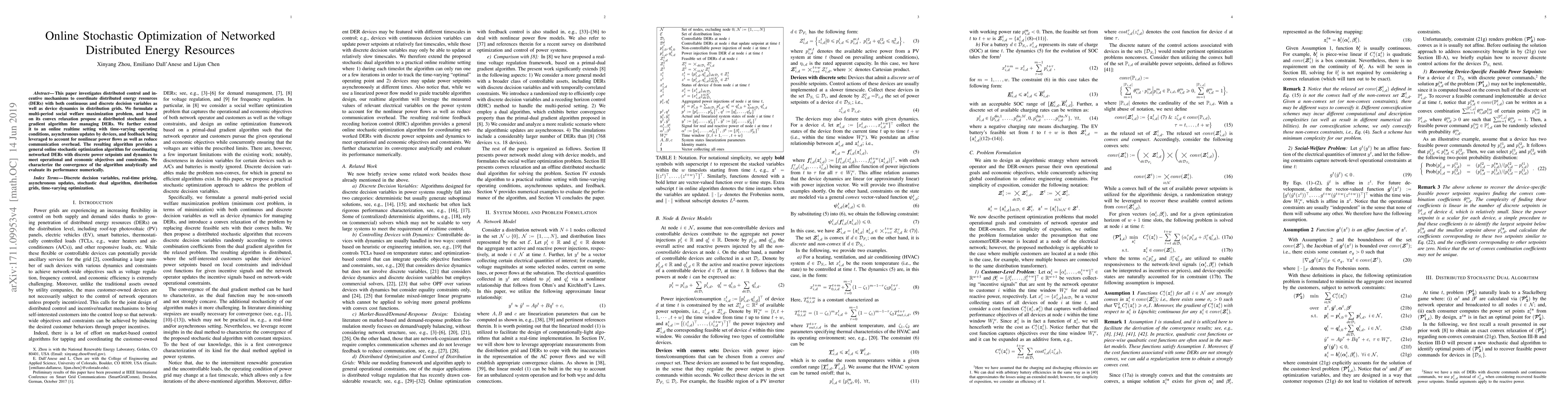 This paper proposes a distributed stochastic dual gradient algorithm for optimizing networked distributed energy resources (DERs) in a multi-period social welfare maximization framework, extending it to an online setting to handle time-varying conditions and asynchronous updates. The algorithm's performance is analyzed analytically and evaluated numerically.