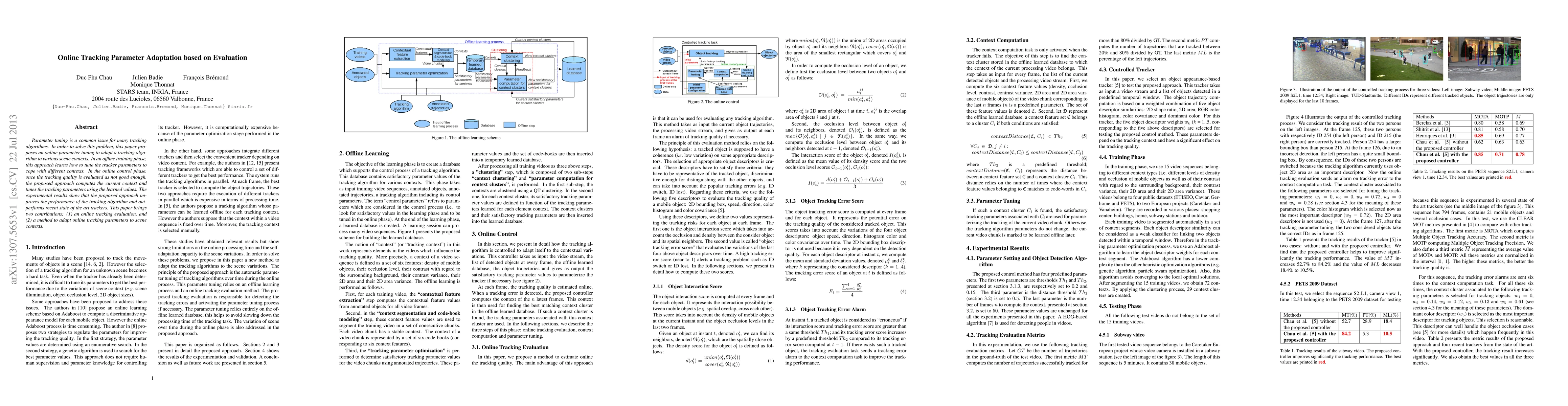 This paper proposes an online tracking parameter adaptation method that improves tracking performance in various scene contexts, outperforming recent state-of-the-art trackers.