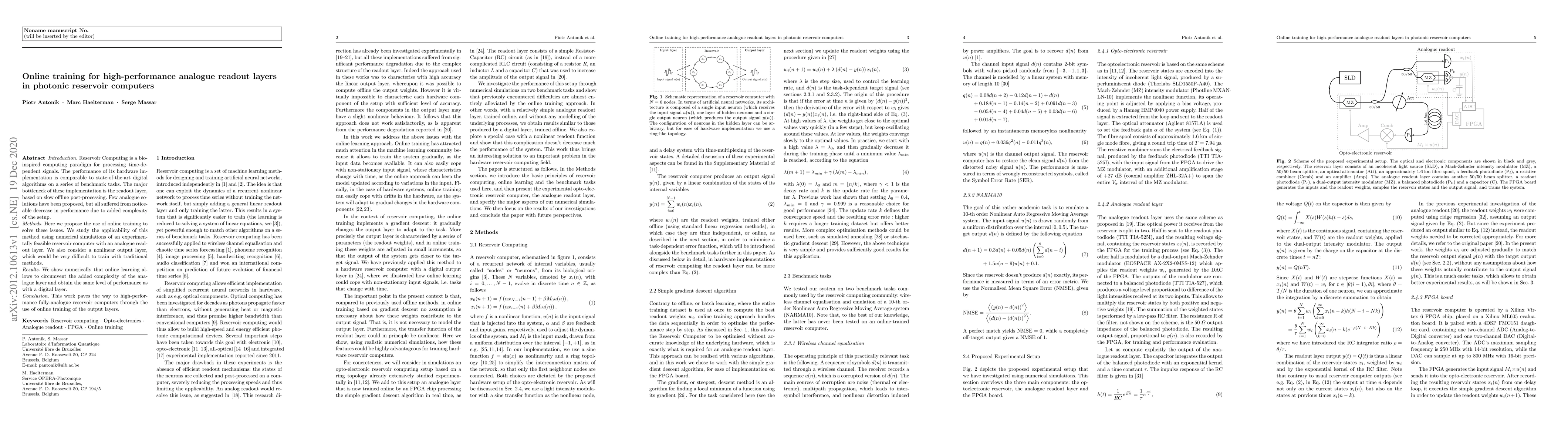 Introduction. Reservoir Computing is a bio-inspired computing paradigm for processing time-dependent signals. The performance of its hardware implementation is comparable to state-of-the-art digital algorithms on a series of benchmark tasks. The major bottleneck of these implementation is the readout layer, based on slow offline post-processing. Few analogue solutions have been proposed, but all suffered from notice able decrease in performance due to added complexity of the setup. Methods. Here we propose the use of online training to solve these issues. We study the applicability of this method using numerical simulations of an experimentally feasible reservoir computer with an analogue readout layer. We also consider a nonlinear output layer, which would be very difficult to train with traditional methods. Results. We show numerically that online learning allows to circumvent the added complexity of the analogue layer and obtain the same level of performance as with a digital layer. Conclusion. This work paves the way to high-performance fully-analogue reservoir computers through the use of online training of the output layers.