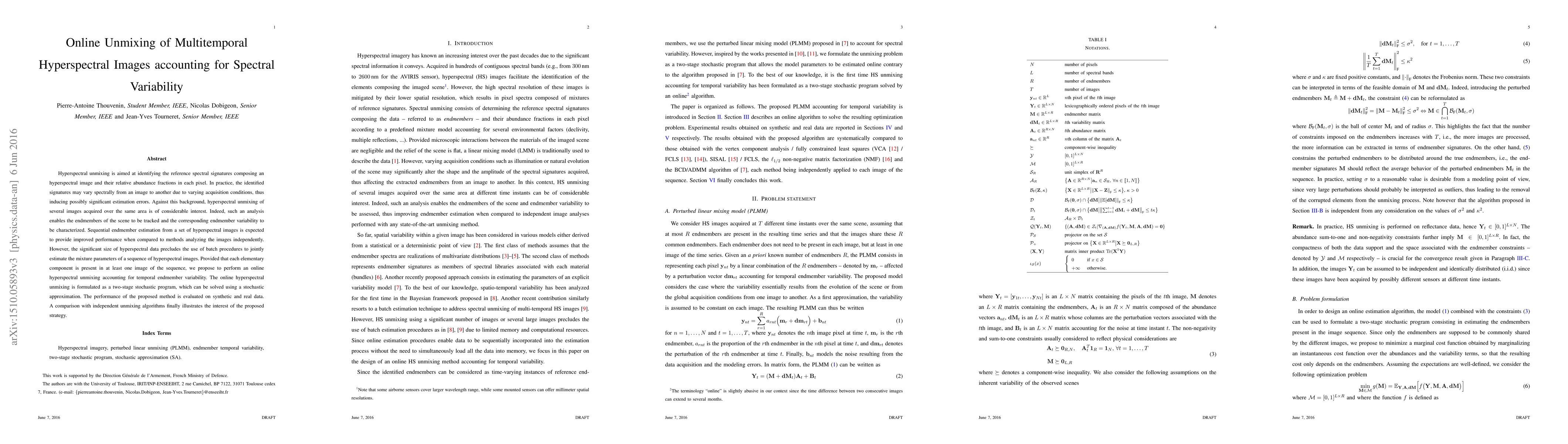 This paper proposes an online unmixing method for multitemporal hyperspectral images to account for spectral variability due to changing acquisition conditions. The method aims to sequentially estimate endmembers and their abundances, leveraging temporal information to improve accuracy compared to independent image analysis.