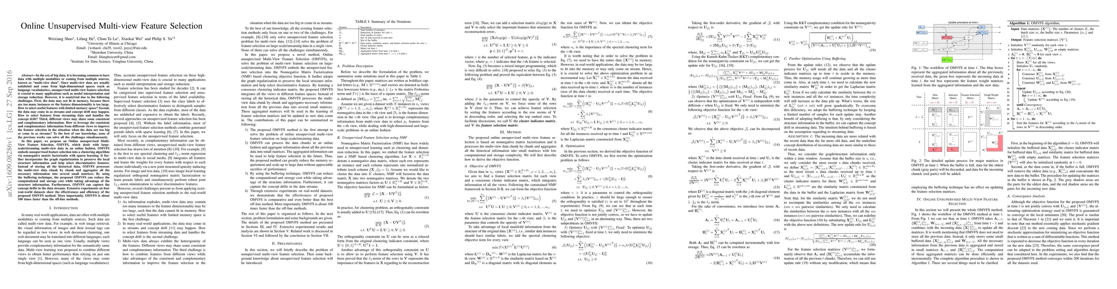 This paper proposes an Online Unsupervised Multi-View Feature Selection (OMVFS) method to address the challenges of large-scale and streaming multi-view data. OMVFS integrates unsupervised feature selection into a clustering algorithm using NMF with sparse learning and graph regularization, enabling efficient processing of data chunks and capturing concept drifts while significantly reducing computational and storage costs.