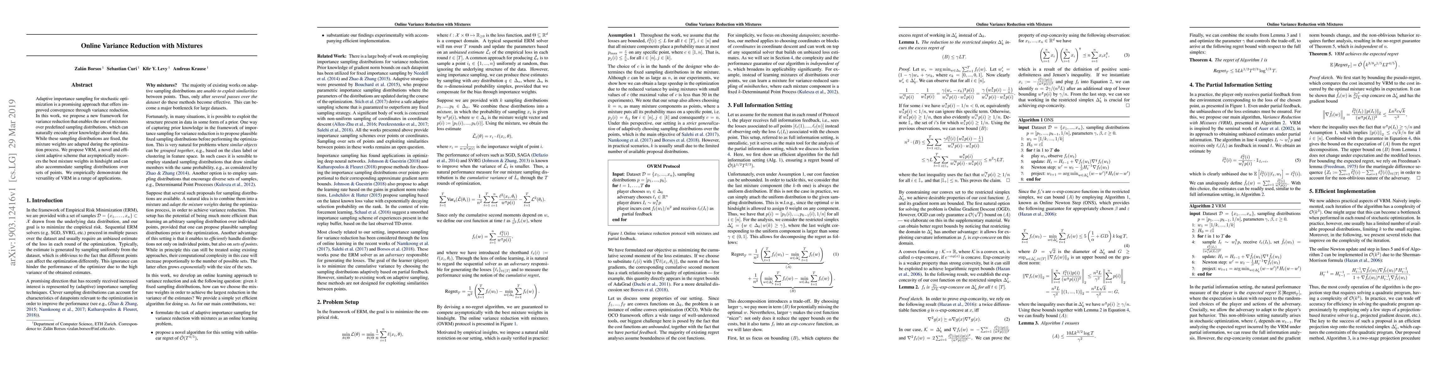 This paper introduces VRM, a novel adaptive importance sampling framework for variance reduction in stochastic optimization, which uses mixtures of predefined sampling distributions to incorporate prior knowledge. The proposed method dynamically adjusts mixture weights during optimization, achieving optimal performance in hindsight and demonstrating effectiveness across various applications.