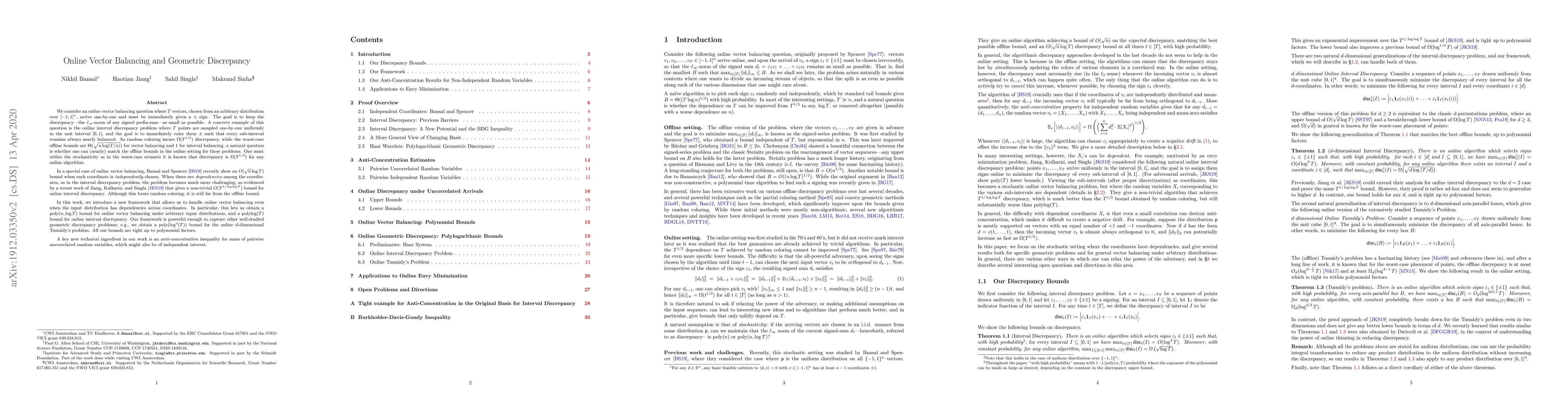 This paper introduces a new framework for online vector balancing that achieves poly(n, log T) bound for arbitrary input distributions and poly(log T) bound for online interval discrepancy, improving upon previous non-trivial bounds.