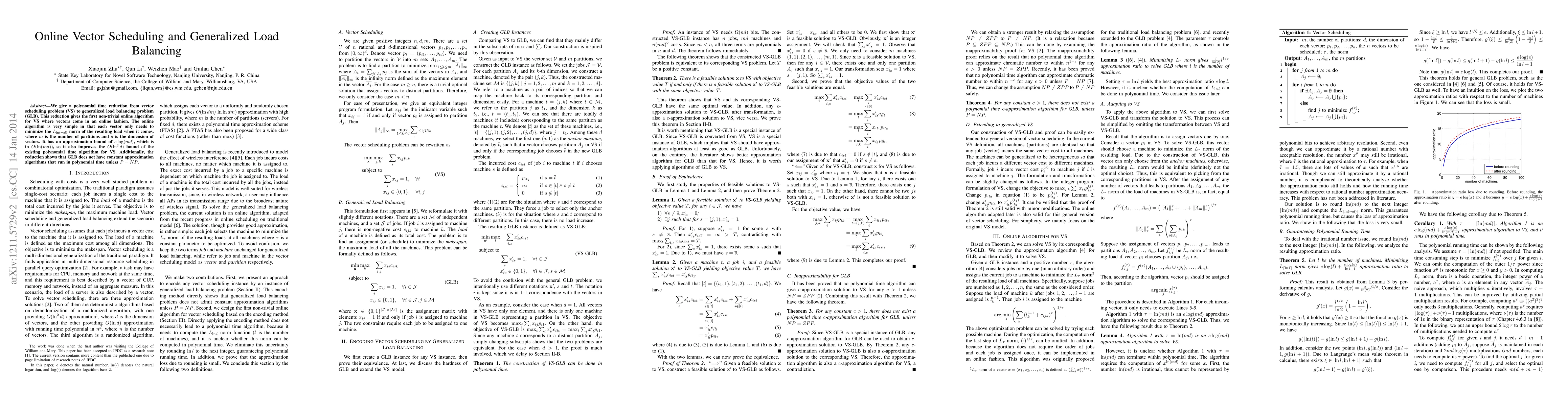 We give a polynomial time reduction from vector scheduling problem (VS) to generalized load balancing problem (GLB). This reduction gives the first non-trivial online algorithm for VS where vectors come in an online fashion. The online algorithm is very simple in that each vector only needs to minimize the $L_{\ln(md)}$ norm of the resulting load when it comes, where $m$ is the number of partitions and $d$ is the dimension of vectors. It has an approximation bound of $e\log(md)$, which is in $O(\ln(md))$, so it also improves the $O(\ln^2d)$ bound of the existing polynomial time algorithm for VS. Additionally, the reduction shows that GLB does not have constant approximation algorithms that run in polynomial time unless $P=NP$.