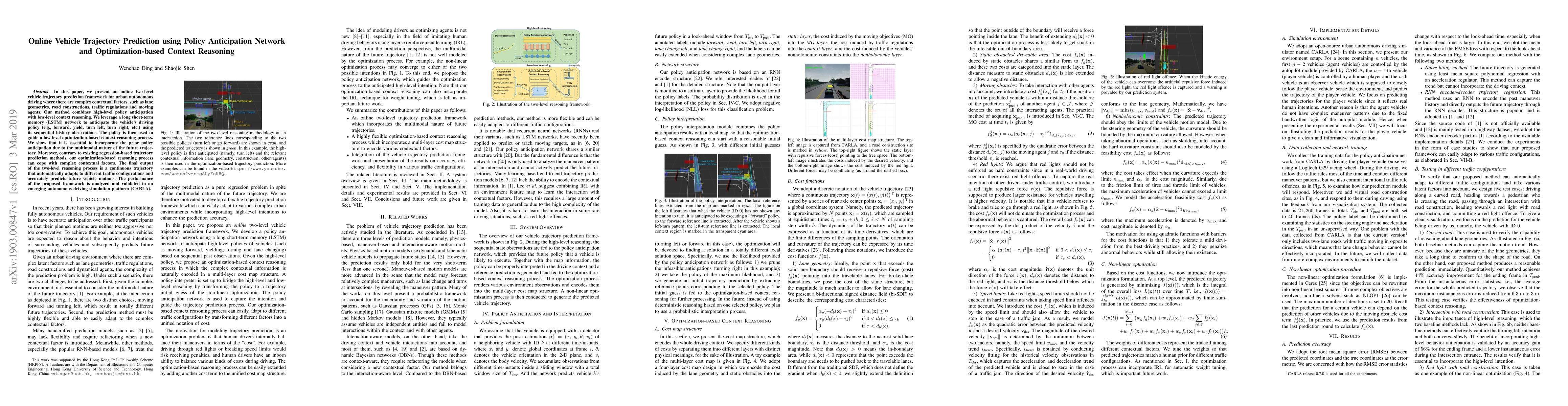 This paper introduces an online vehicle trajectory prediction framework combining policy anticipation with optimization-based context reasoning for urban autonomous driving. It uses LSTM networks to anticipate driving policies and guides an optimization-based process for contextual reasoning, validated in CARLA simulation.