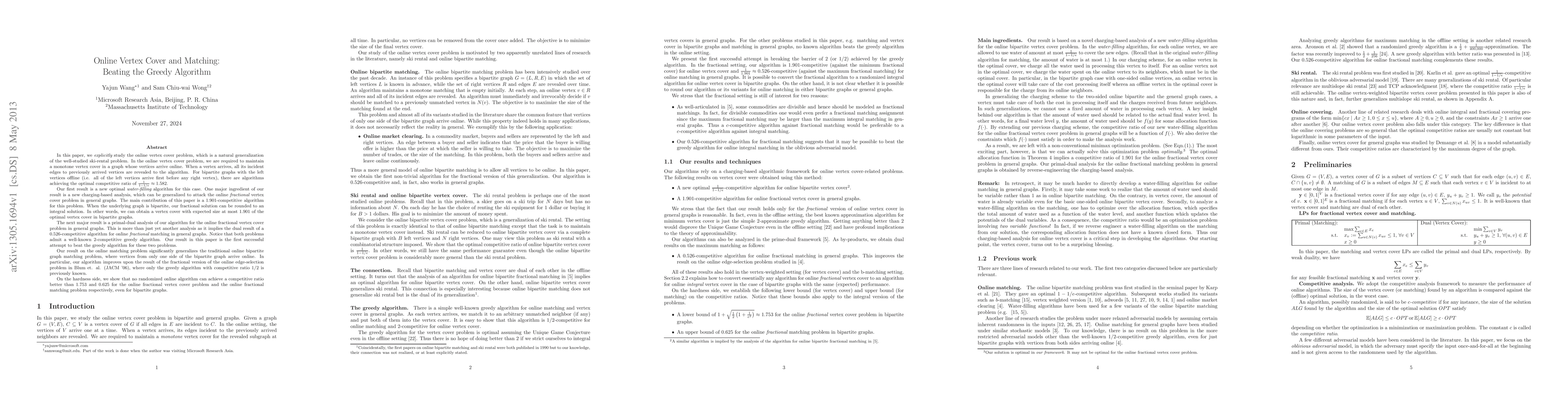 The paper presents a new water-filling algorithm and a primal-dual analysis for the online vertex cover and matching problems, employing a charging-based approach for the vertex cover problem and a primal-dual method for the matching problem.