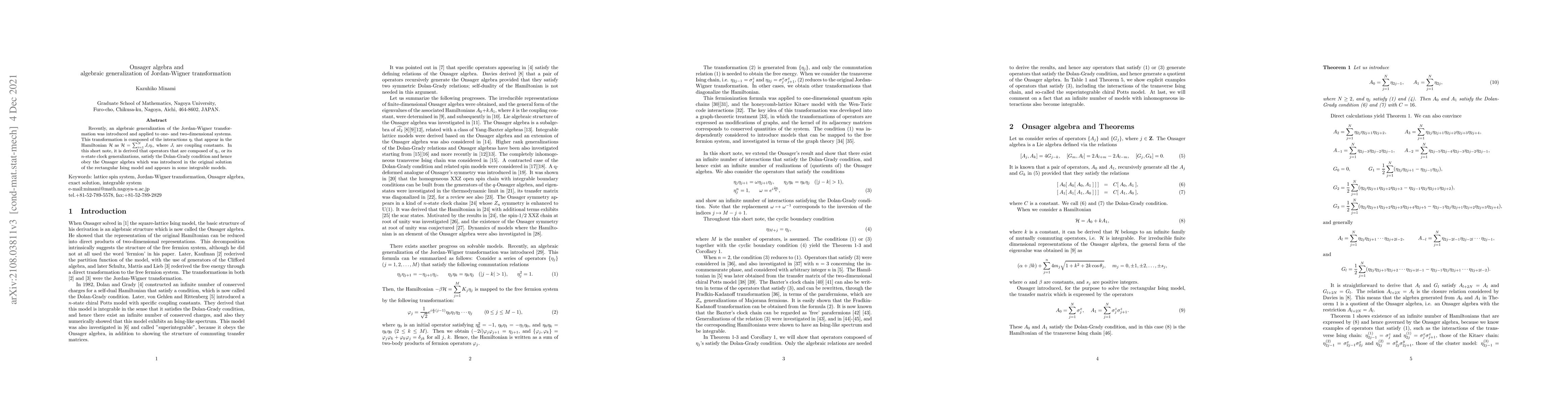 This paper introduces an algebraic generalization of the Jordan-Wigner transformation and demonstrates that operators derived from it, including $n$-state clock generalizations, generate the Onsager algebra, which is significant in the context of integrable models and the original solution of the rectangular Ising model.