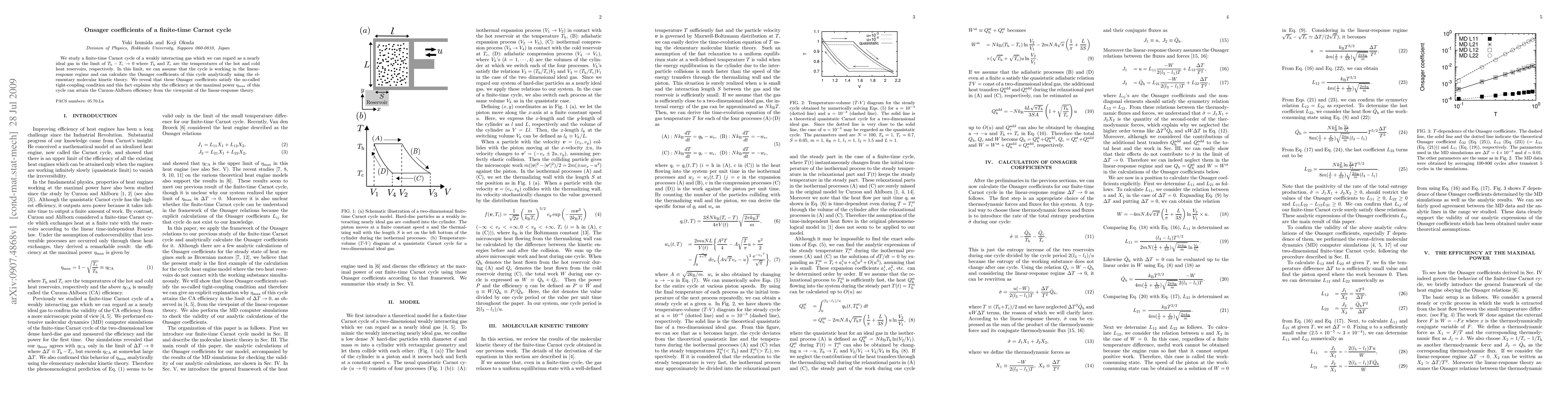 This paper investigates the Onsager coefficients for a finite-time Carnot cycle in a nearly ideal gas, revealing that they satisfy the tight-coupling condition, which explains why the cycle's efficiency at maximal power matches the Curzon-Ahlborn efficiency under linear-response theory.