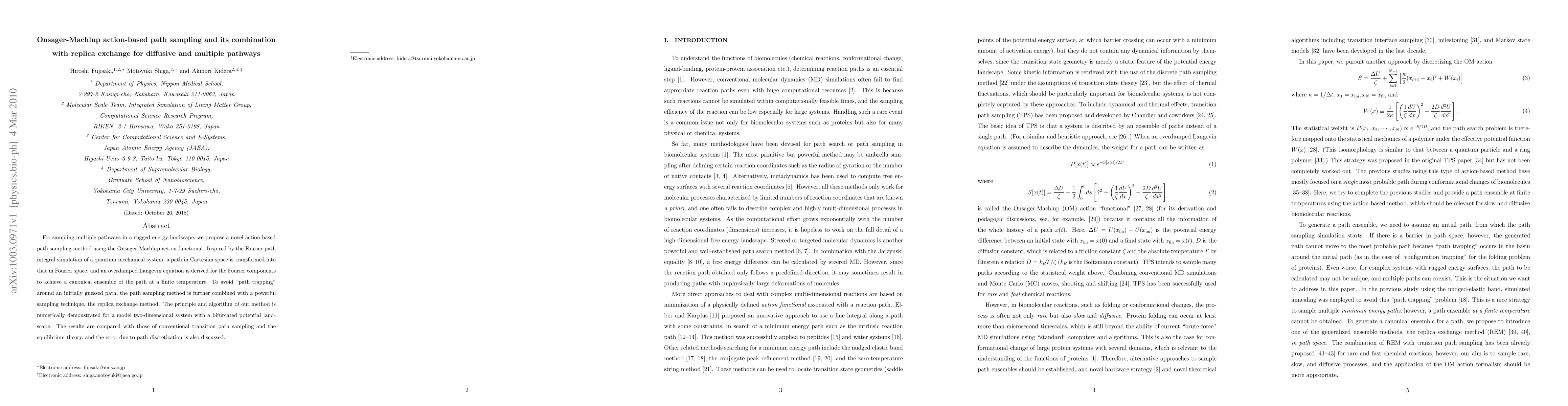 This paper proposes a novel action-based path sampling method using the Onsager-Machlup action functional to sample multiple pathways in complex energy landscapes. It combines this method with replica exchange to avoid path trapping, demonstrating its effectiveness on a two-dimensional model system.