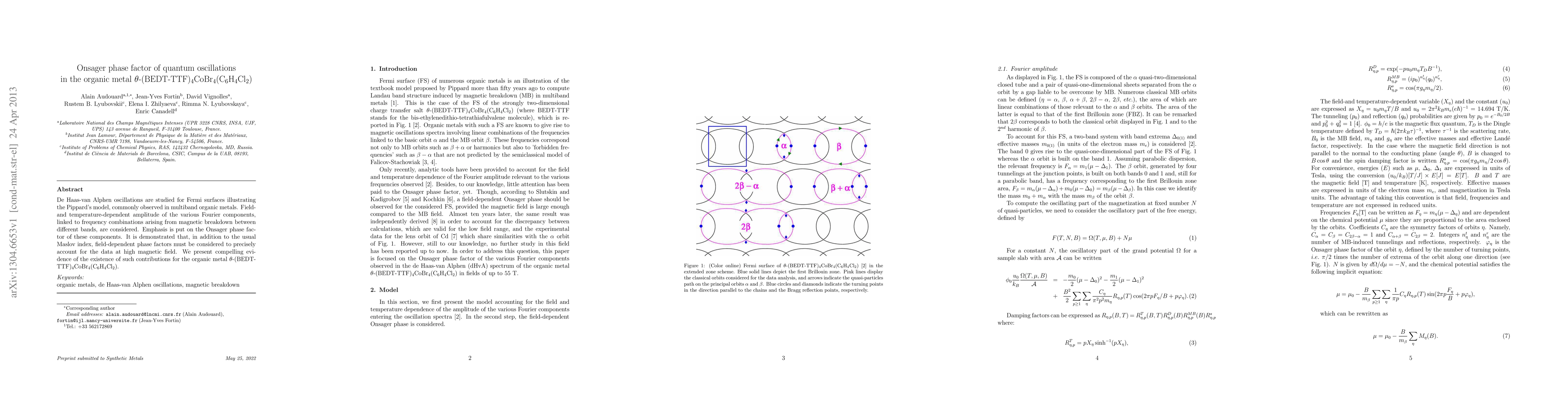 Researchers studied oscillations in an organic metal, finding that a field-dependent phase factor is necessary to accurately explain the data at high magnetic fields, providing evidence of its existence for the first time.