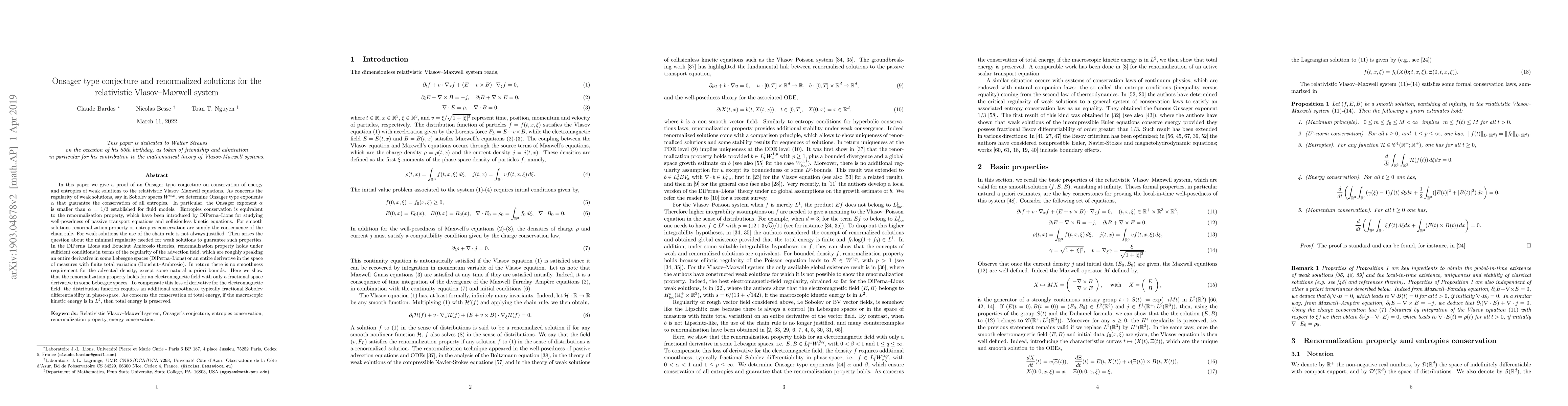 Researchers prove conservation of energy and entropies for weak solutions to the relativistic Vlasov-Maxwell system, identifying a smaller Onsager exponent than previously established for fluid models.