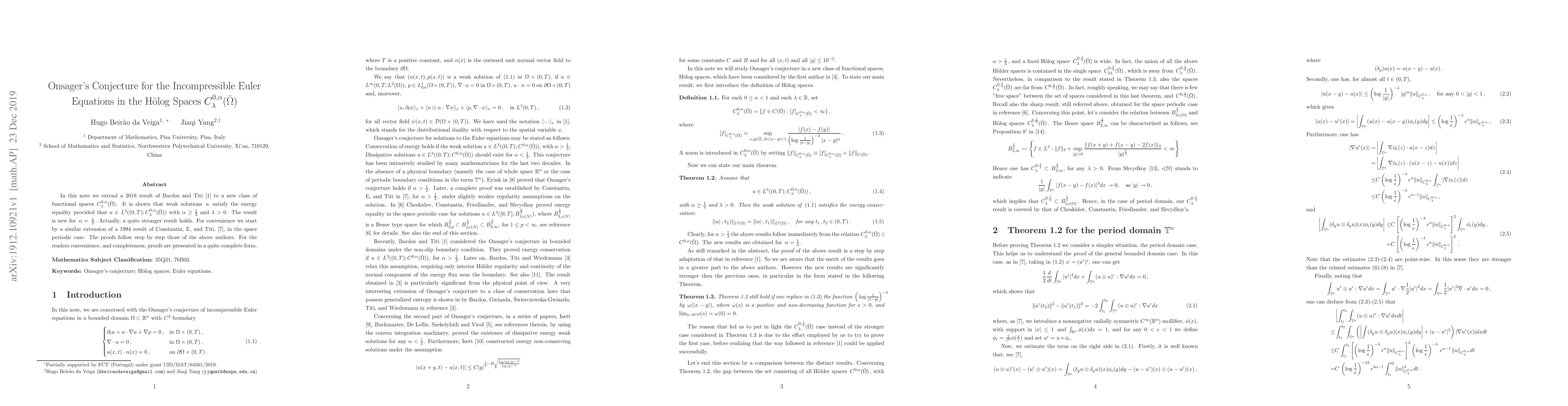 In this note we extend a 2018 result of Bardos and Titi \cite{BT} to a new class of functional spaces $C^{0,\alpha}_\lambda(\bar{\Omega})$. It is shown that weak solutions $\,u\,$ satisfy the energy equality provided that $u\in L^3((0,T);C^{0,\alpha}_\lambda(\bar{\Omega}))$ with $\alpha\geq\frac{1}{3}$ and $\lambda>0$. The result is new for $\,\alpha = \,\frac{1}{3}\,.$ Actually, a quite stronger result holds. For convenience we start by a similar extension of a 1994 result of Constantin, E, and Titi, \cite{CET}, in the space periodic case. The proofs follow step by step those of the above authors. For the readers convenience, and completeness, proofs are presented in a quite complete form.