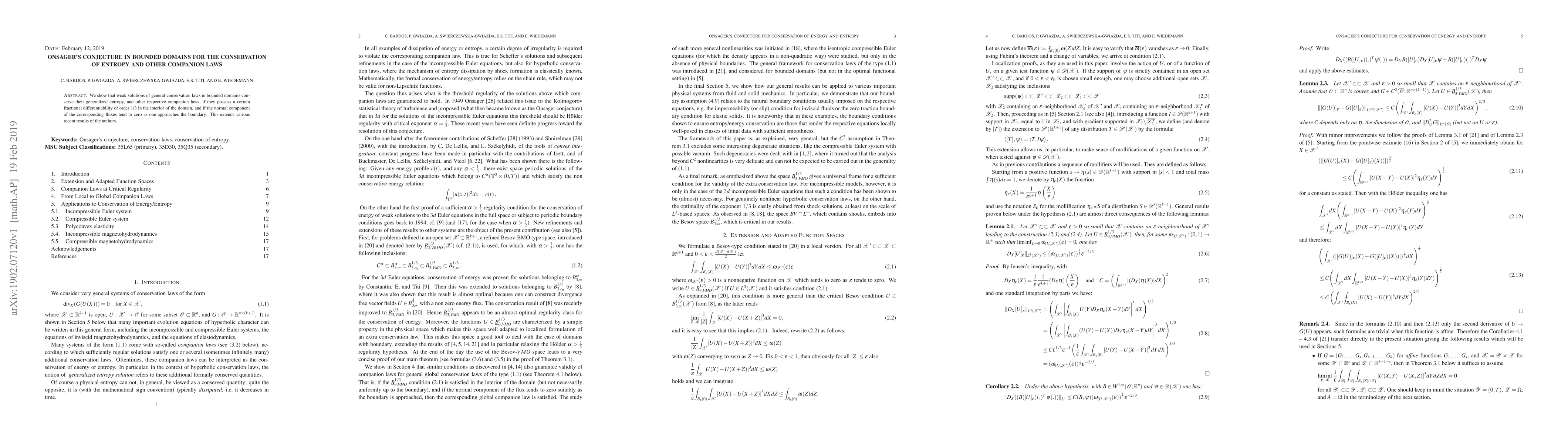 The paper demonstrates that weak solutions of general conservation laws in bounded domains maintain their generalized entropy and other companion laws when they exhibit fractional differentiability of order 1/3 within the domain and have fluxes normal to the boundary tending to zero near the edges. This extends previous findings by the authors.