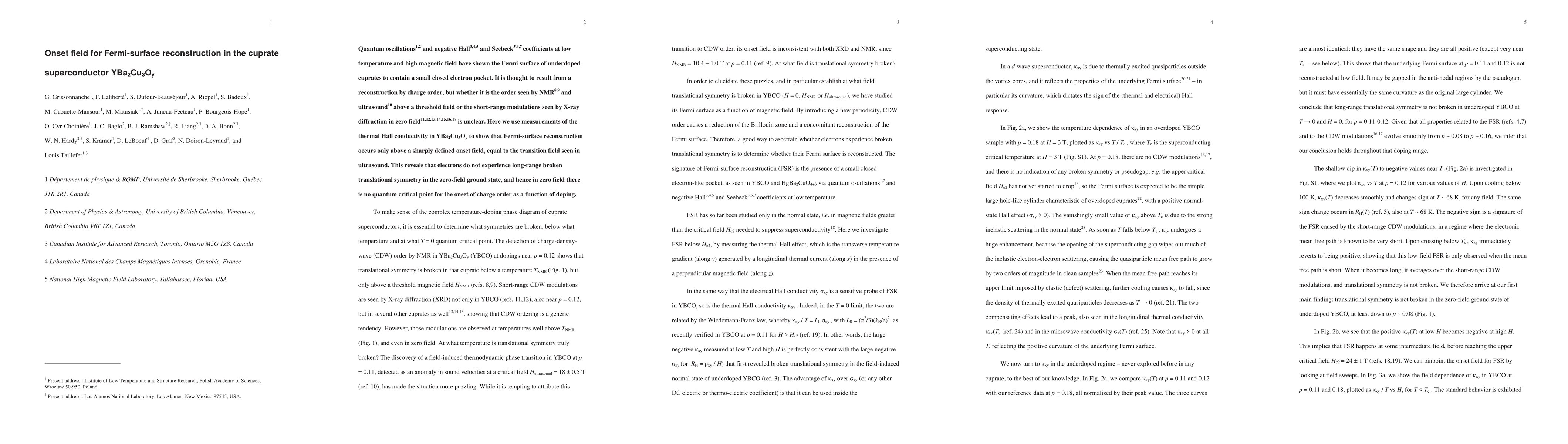 Researchers used thermal Hall conductivity measurements to find that Fermi-surface reconstruction in YBCO occurs only above a specific onset field, indicating no quantum critical point for charge order at zero magnetic field.