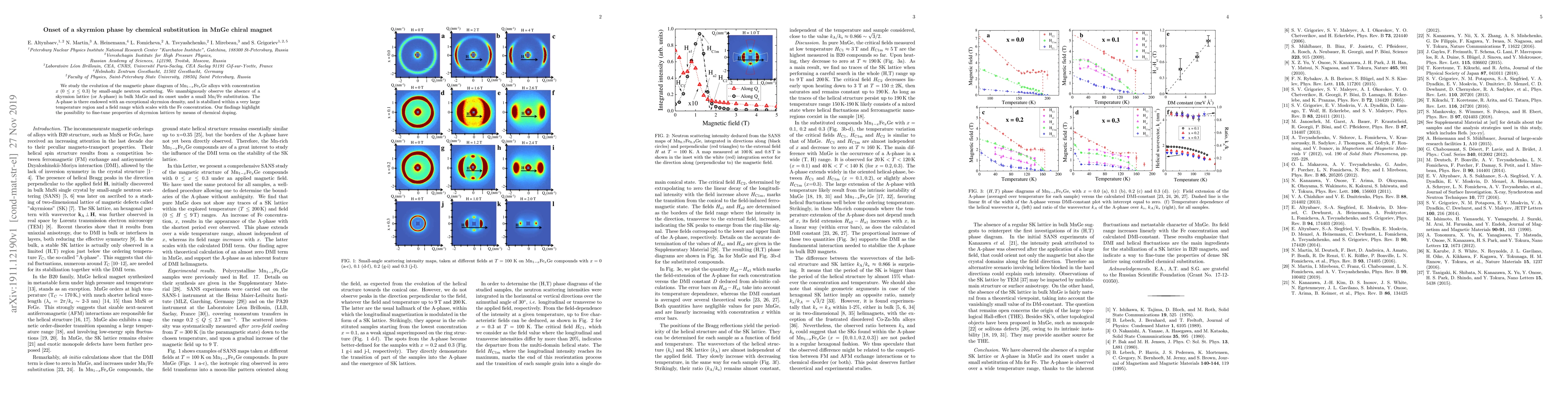 We study the evolution of the magnetic phase diagram of Mn$_{1-x}$Fe$_{x}$Ge alloys with concentration $x$ ($0 \leq x \leq 0.3$) by small-angle neutron scattering. We unambiguously observe the absence of a skyrmion lattice (or A-phase) in bulk MnGe and its onset under a small Mn/Fe substitution. The A-phase is there endowed with an exceptional skyrmion density, and is stabilized within a very large temperature region and a field range which scales with the Fe concentration. Our findings highlight the possibility to fine-tune properties of skyrmion lattices by means of chemical doping.