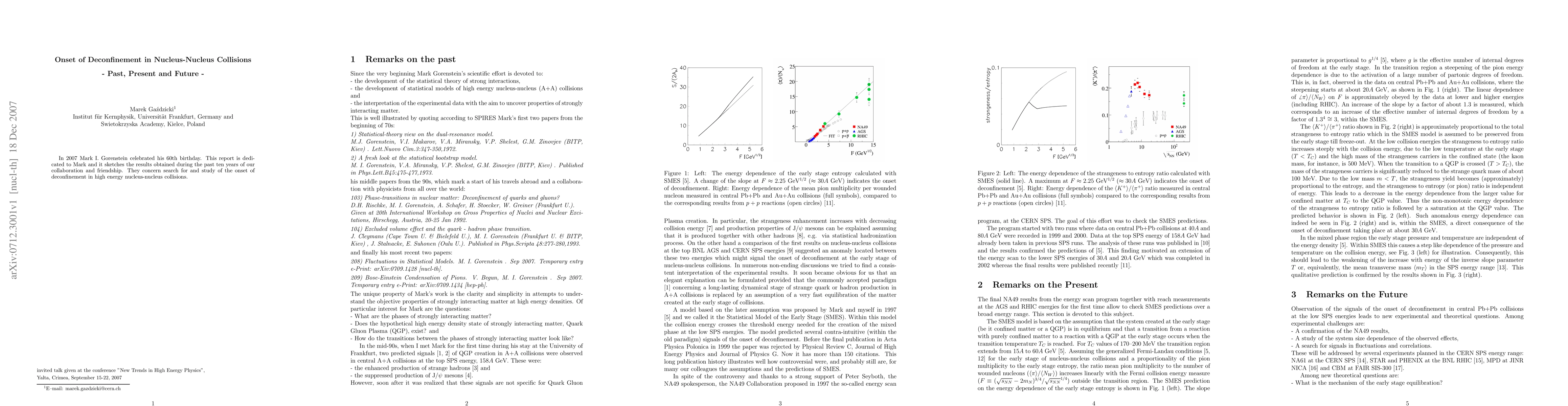 In 2007 Mark I. Gorenstein celebrated his 60th birthday. This report is dedicated to Mark and it sketches the results obtained during the past ten years of our collaboration and friendship. They concern search for and study of the onset of deconfinement in high energy nucleus-nucleus collisions.