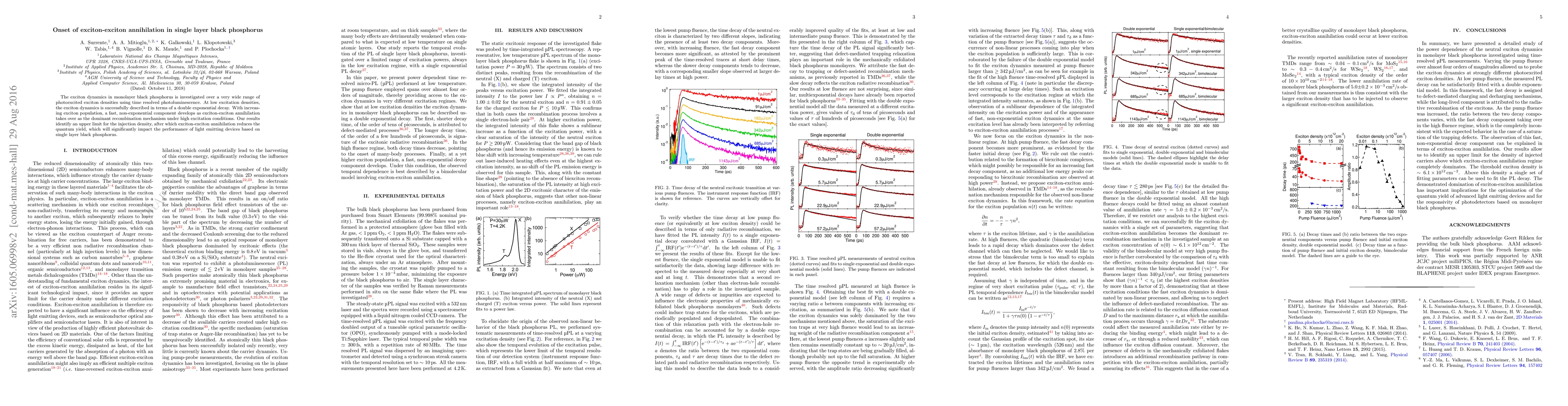 This paper investigates exciton dynamics in monolayer black phosphorus under varying photoexcited densities, revealing that exciton-exciton annihilation becomes dominant at high densities, reducing quantum yield and impacting device performance. The study identifies an upper limit for exciton injection density beyond which annihilation occurs.