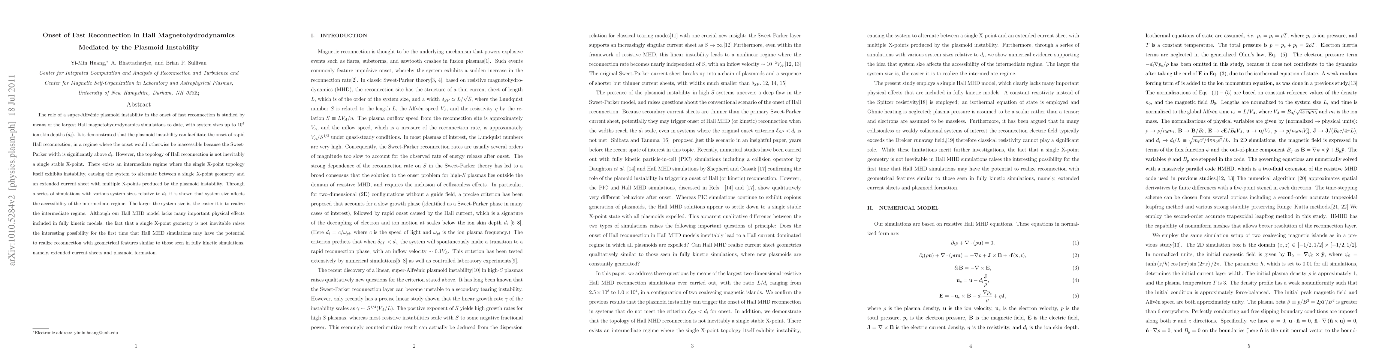 This paper investigates the role of super-Alfv\'enic plasmoid instability in initiating fast reconnection in Hall magnetohydrodynamics, demonstrating that it can enable rapid reconnection even when the Sweet-Parker width exceeds ion skin depths. It finds that the system alternates between a single X-point and extended current sheets with multiple X-points, with larger system sizes favoring the latter.