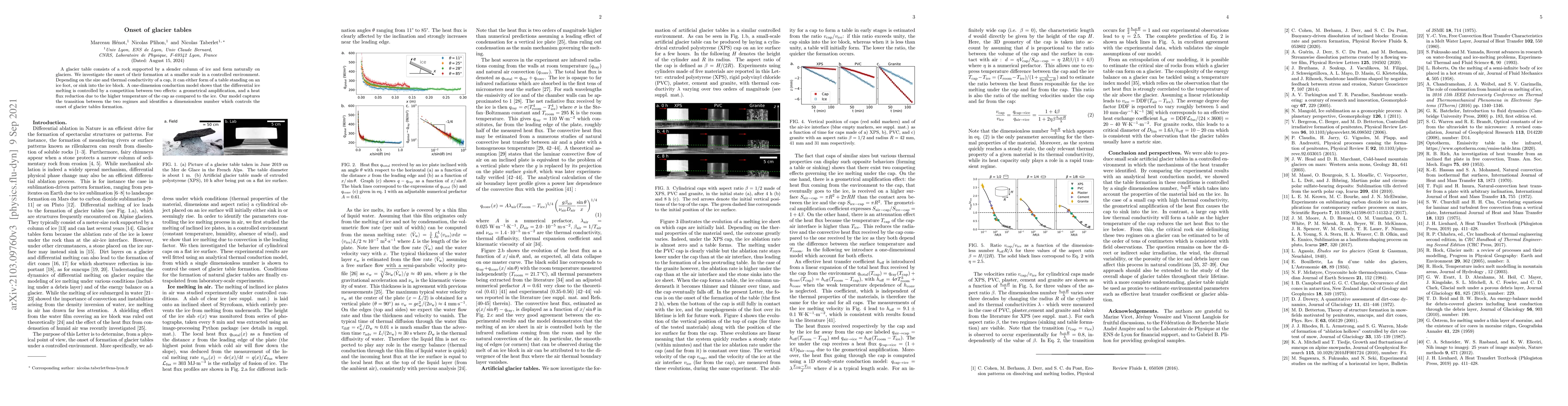 This study investigates the formation of glacier tables, which are rock pillars supported by ice, using a controlled environment. A one-dimensional conduction model reveals that the onset of table formation depends on a balance between geometrical amplification and heat flux reduction due to cap temperature, identifying a dimensionless number that governs this transition.