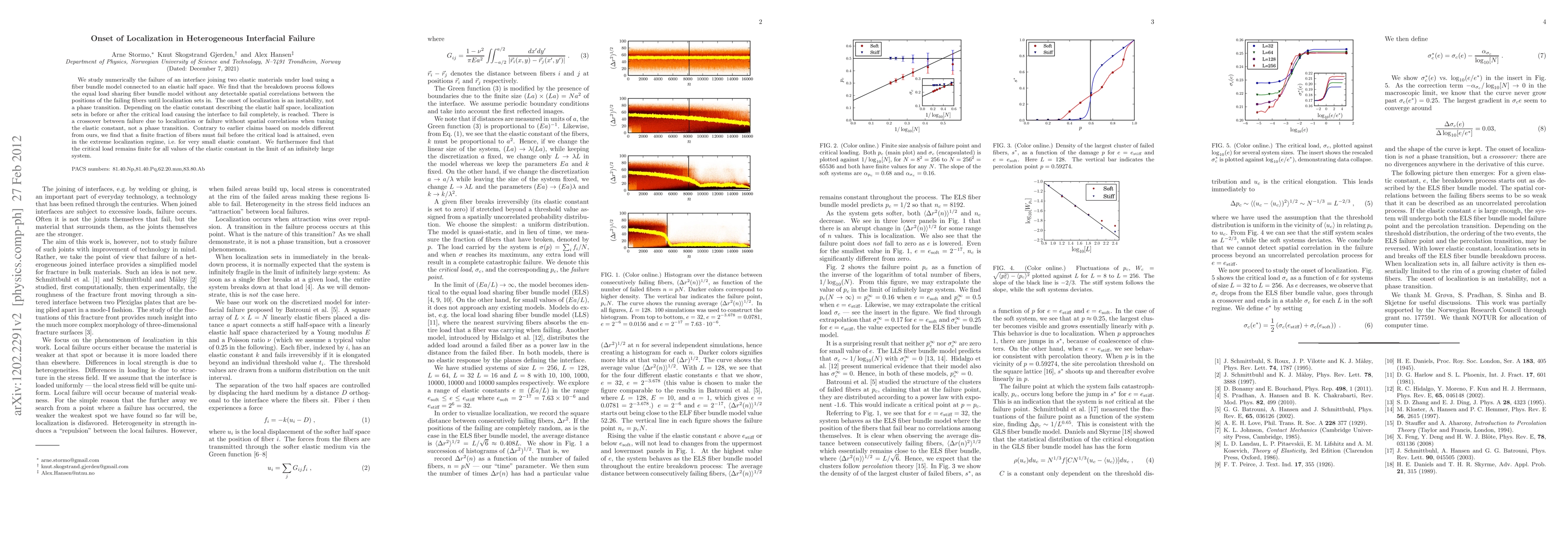 This study numerically investigates the failure of an interface between two elastic materials using a fiber bundle model, finding that localization is an instability rather than a phase transition. The critical load remains finite and a finite fraction of fibers must fail before complete failure, contradicting previous claims.