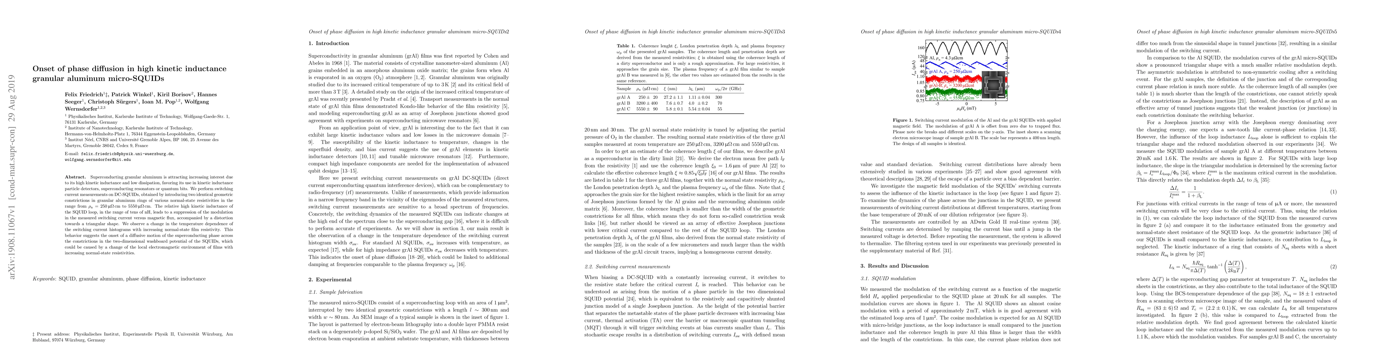 This study investigates the phase diffusion in high kinetic inductance granular aluminum micro-SQUIDs, revealing a shift in switching current behavior with increased normal-state resistivity, indicating the onset of diffusive phase motion due to changes in the local electromagnetic environment.