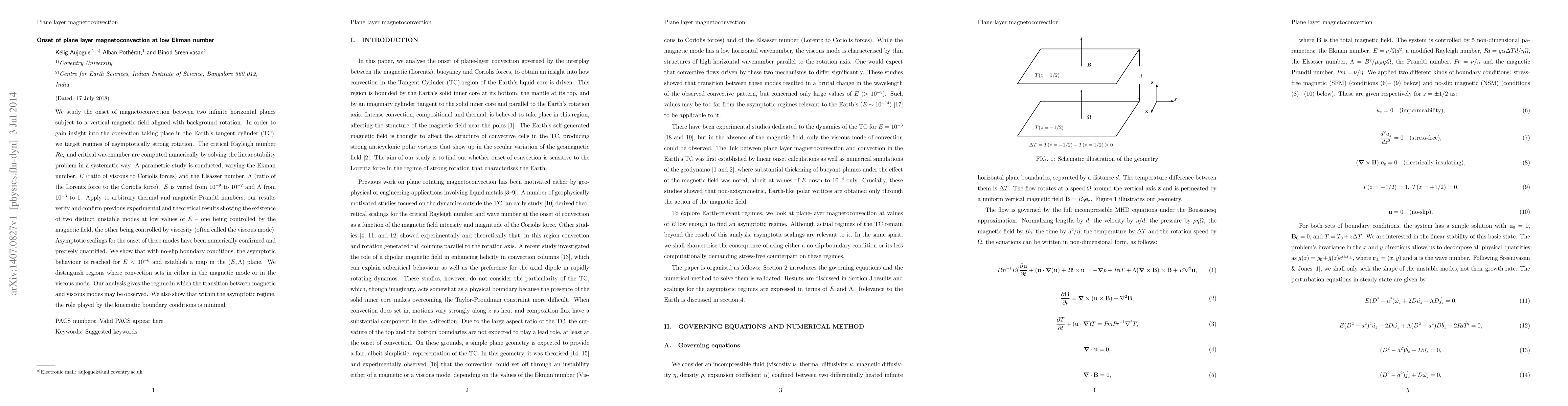 This paper investigates the onset of magnetoconvection in rotating plane layers under strong rotation, focusing on the Earth's tangent cylinder. The study numerically determines critical Rayleigh and wavenumbers, revealing two unstable modes—one magnetic and one viscous—and confirms their asymptotic scalings, establishing a regime map in the $(E,\Lambda)$ plane for the transition between these modes.