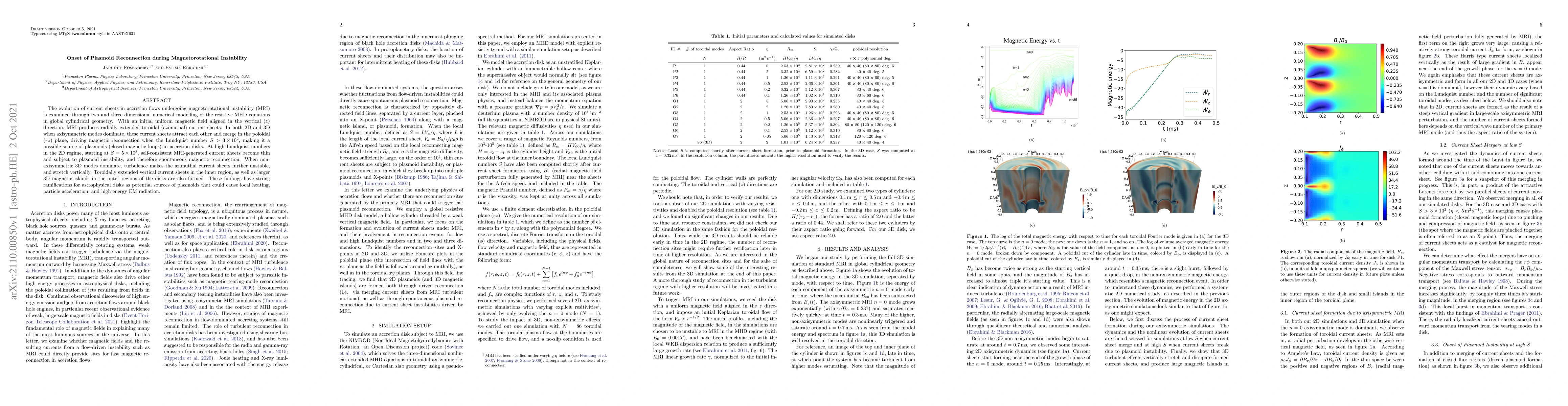 This paper investigates the formation of plasmoids via magnetic reconnection in accretion flows experiencing magnetorotational instability (MRI), using resistive MHD simulations. It finds that current sheets merge and reconnect when the Lundquist number exceeds a critical value, potentially generating plasmoids in astrophysical disks.