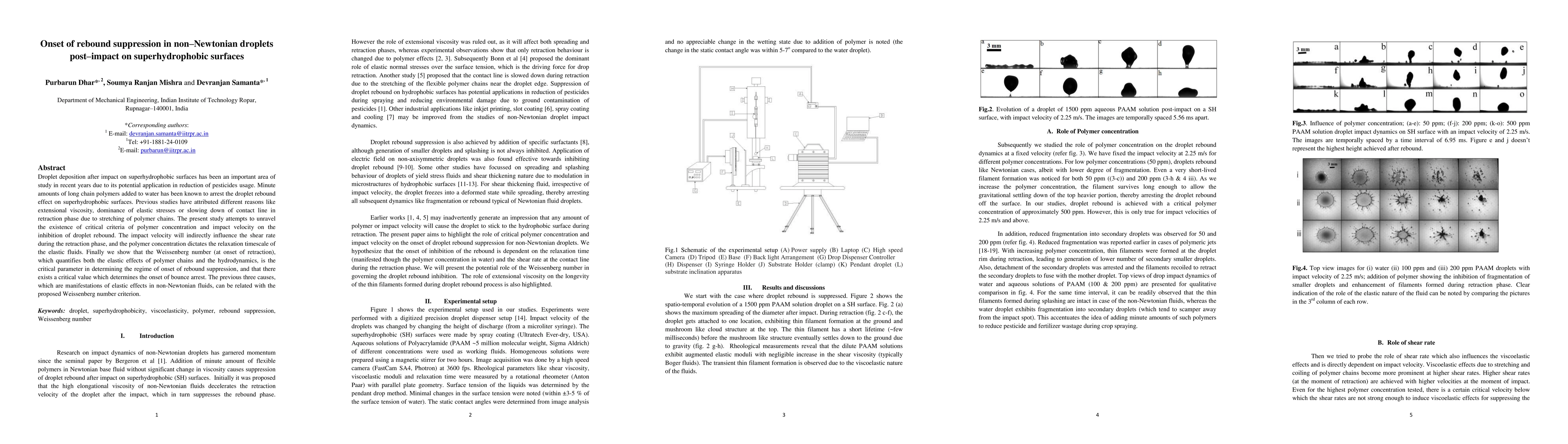 This study investigates the suppression of droplet rebound on superhydrophobic surfaces when impacted by non-Newtonian droplets containing long chain polymers. The critical parameter determining the onset of rebound suppression is identified as the Weissenberg number, which encapsulates both polymer elasticity and hydrodynamic effects.