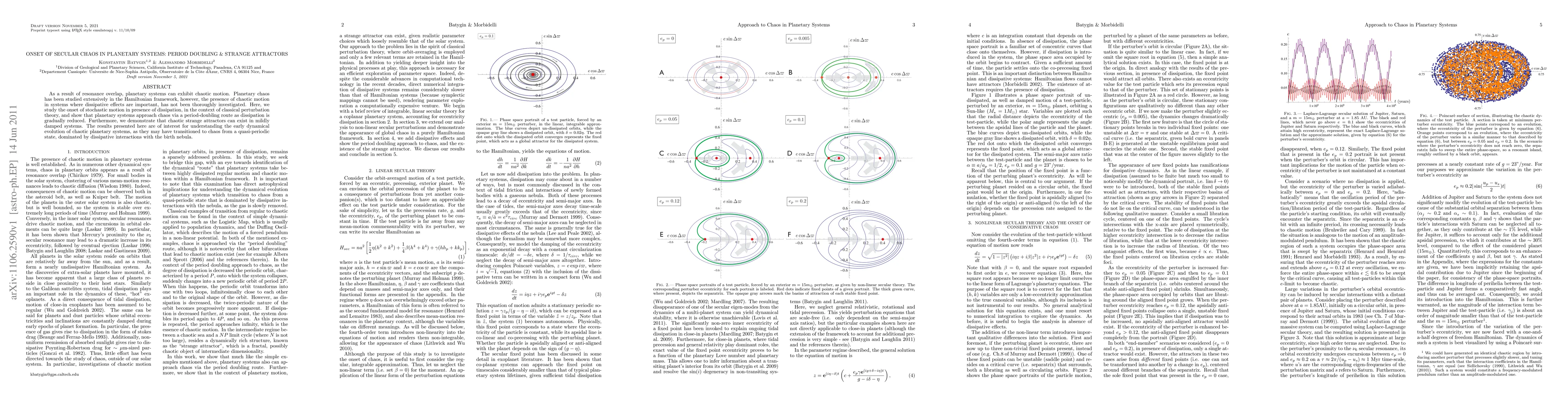 This paper investigates the onset of chaotic motion in planetary systems due to resonance overlap and dissipative effects, showing that chaos emerges via period doubling as dissipation decreases. It also reveals the existence of chaotic strange attractors in mildly damped systems, providing insights into the early dynamical evolution of chaotic planetary systems.