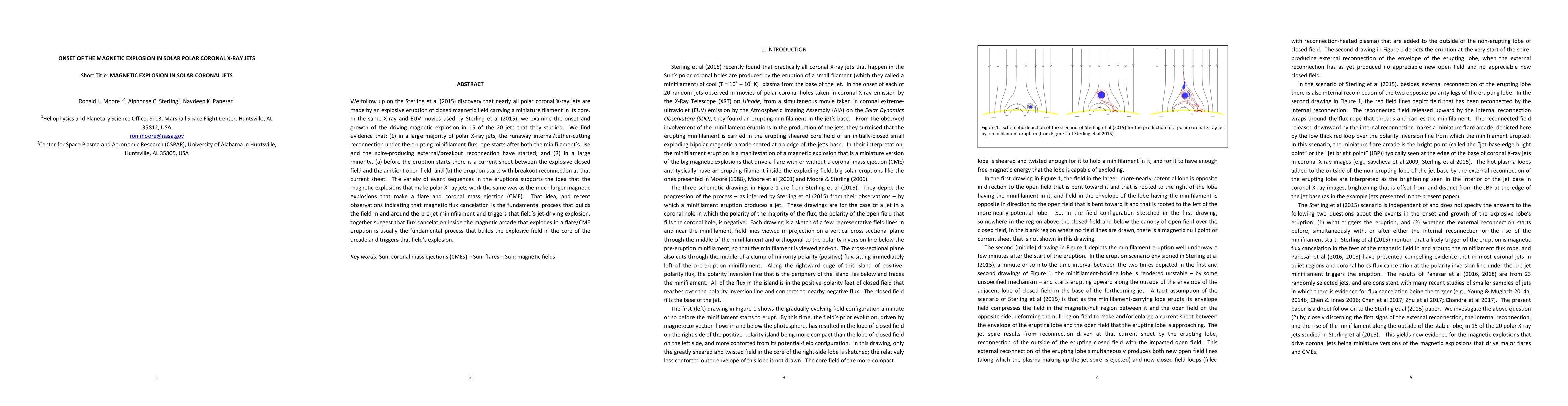 We follow up on the Sterling et al (2015) discovery that nearly all polar coronal X-ray jets are made by an explosive eruption of closed magnetic field carrying a miniature filament in its core. In the same X-ray and EUV movies used by Sterling et al (2015), we examine the onset and growth of the driving magnetic explosion in 15 of the 20 jets that they studied. We find evidence that: (1) in a large majority of polar X-ray jets, the runaway internal/tether-cutting reconnection under the erupting minifilament flux rope starts after both the minifilaments rise and the spire-producing external/breakout reconnection have started and (2) in a large minority, (a) before the eruption starts there is a current sheet between the explosive closed field and the ambient open field, and (b) the eruption starts with breakout reconnection at that current sheet. The variety of event sequences in the eruptions supports the idea that the magnetic explosions that make polar X-ray jets work the same way as the much larger magnetic explosions that make a flare and coronal mass ejection (CME). That idea, and recent observations indicating that magnetic flux cancelation is the fundamental process that builds the field in and around the pre-jet mininfilament and triggers that fields jet-driving explosion, together suggest that flux cancelation inside the magnetic arcade that explodes in a flare/CME eruption is usually the fundamental process that builds the explosive field in the core of the arcade and triggers that fields explosion.