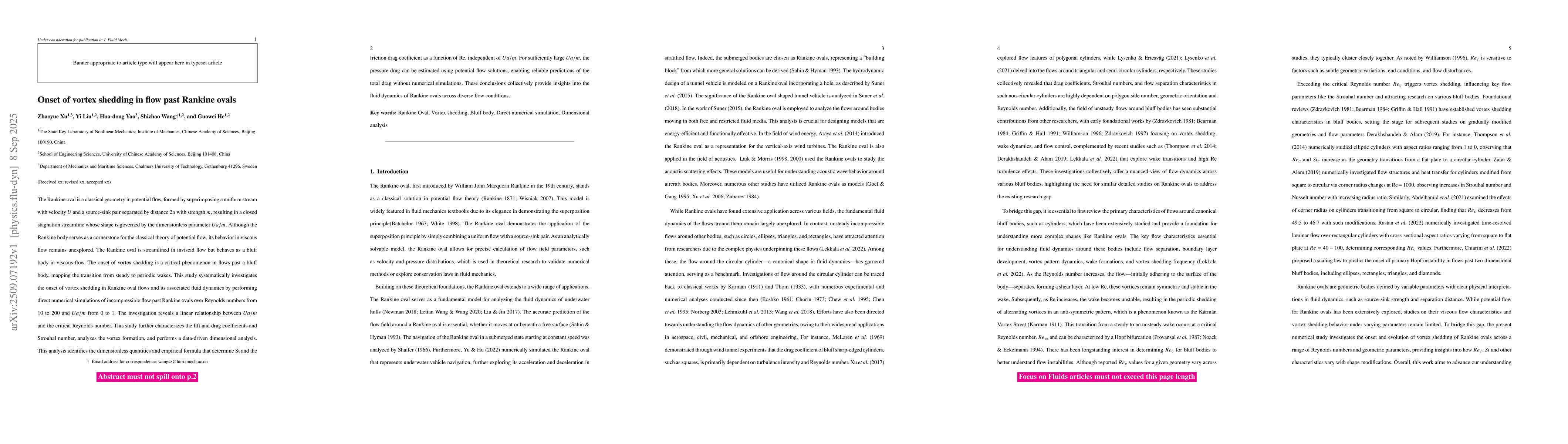 The Rankine oval is a classical geometry in potential flow, formed by superimposing a uniform stream with velocity U and a source-sink pair separated by distance 2a with strength m, resulting in a closed stagnation streamline whose shape is governed by the dimensionless parameter Ua/m. Although the Rankine body serves as a cornerstone for the classical theory of potential flow, its behavior in viscous flow remains unexplored. The Rankine oval is streamlined in inviscid flow but behaves as a bluff body in viscous flow. The onset of vortex shedding is a critical phenomenon in flows past a bluff body, mapping the transition from steady to periodic wakes. This study systematically investigates the onset of vortex shedding in Rankine oval flows and its associated fluid dynamics by performing direct numerical simulations of incompressible flow past Rankine ovals over Reynolds numbers from 10 to 200 and Ua/m from 0 to 1. The investigation reveals a linear relationship between Ua/m and the critical Reynolds number. This study further characterizes the lift and drag coefficients and Strouhal number, analyzes the vortex formation, and performs a data-driven dimensional analysis. This analysis identifies the dimensionless quantities and empirical formula that determine St and the friction drag coefficient as a function of Re, independent of Ua/m. For sufficiently large Ua/m, the pressure drag can be estimated using potential flow solutions, enabling reliable predictions of the total drag without numerical simulations. These conclusions collectively provide insights into the fluid dynamics of Rankine ovals across diverse flow conditions.