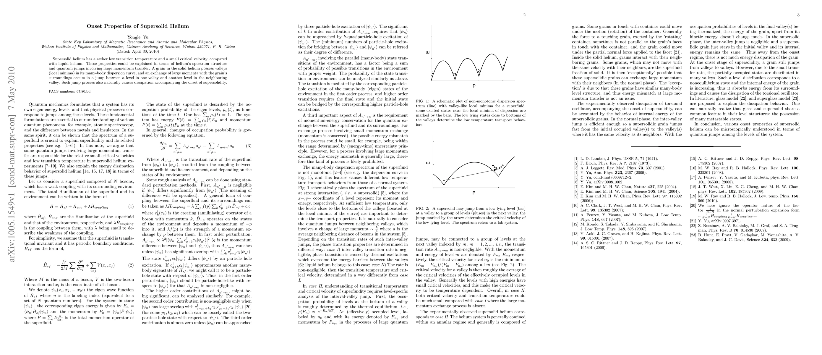 Researchers studied supersolid helium, finding that its properties can be explained by quantum jumps involving large momentum transfer. These jumps cause dissipation, leading to the onset of supersolidity in a grain with valleys in its many-body dispersion curve.