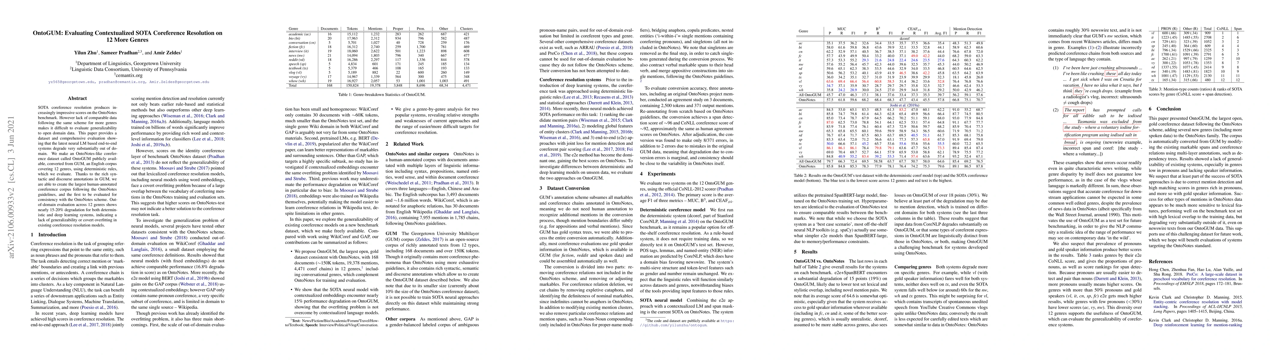This paper presents OntoGUM, a new coreference dataset derived from GUM to evaluate coreference resolution across 12 genres, revealing significant performance drops for state-of-the-art models when applied out-of-domain, highlighting issues of generalizability.