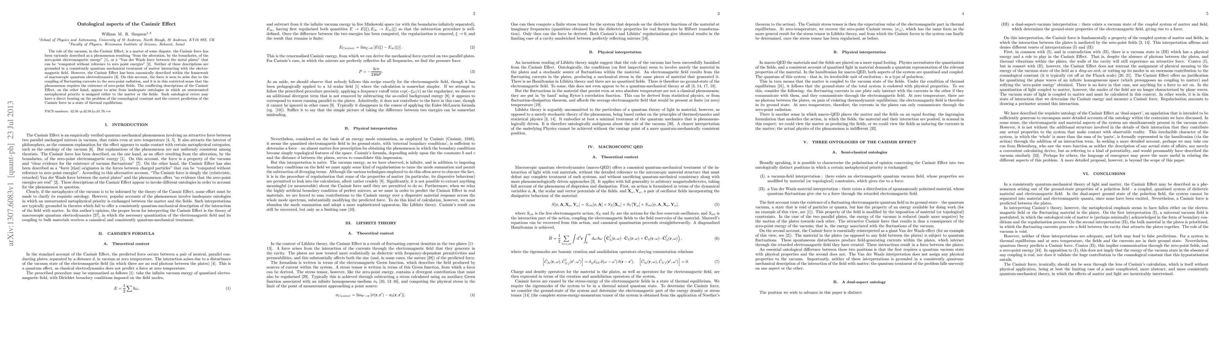 This paper explores the ontological interpretations of the Casimir Effect, arguing that conflicting descriptions arise from inadequate ontologies prioritizing either matter or fields. It suggests that the effect is best understood within macroscopic quantum electrodynamics, emphasizing the role of zero-point radiation in the force's origin.