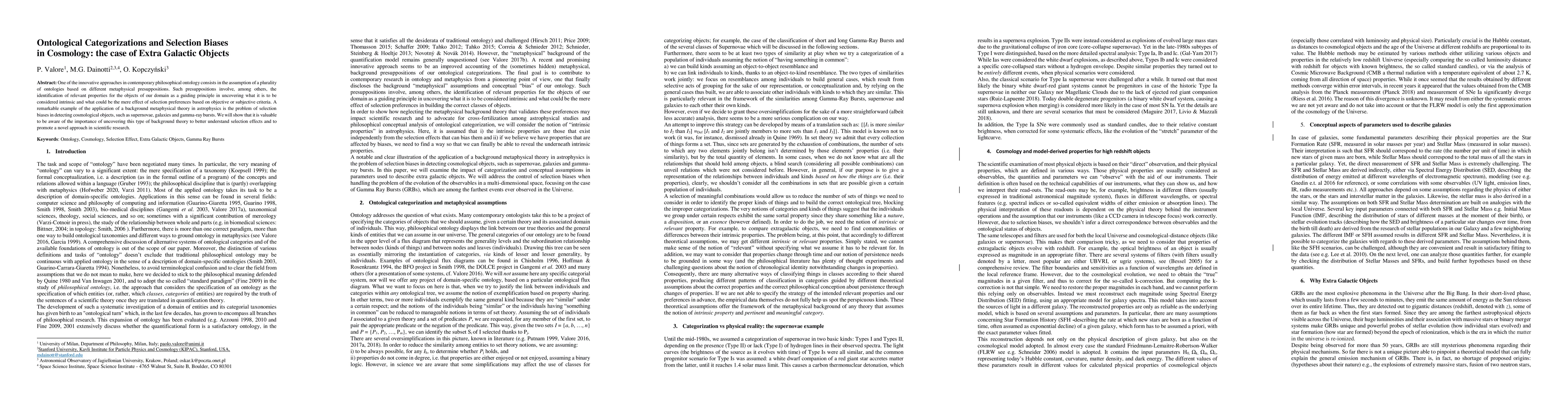 This paper explores how ontological categorizations based on different metaphysical assumptions can reveal selection biases in the detection of extragalactic objects like supernovae and galaxies. It emphasizes the importance of understanding these biases to enhance scientific research methodologies.