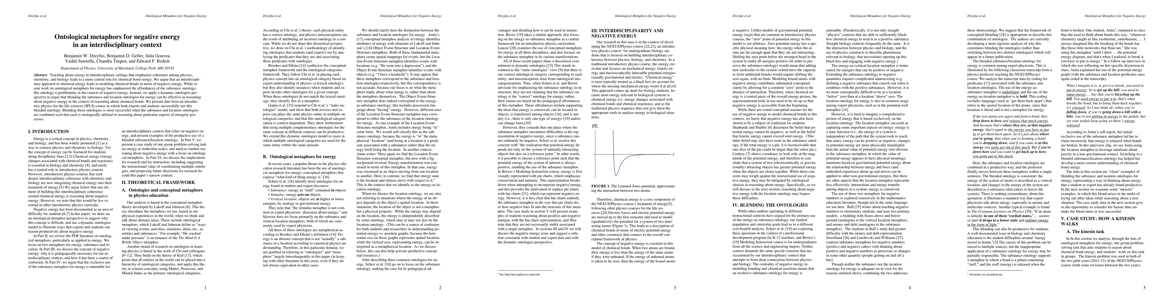 Teaching about energy in interdisciplinary settings that emphasize coherence among physics, chemistry, and biology leads to a more central role for chemical bond energy. We argue that an interdisciplinary approach to chemical energy leads to modeling chemical bonds in terms of negative energy. While recent work on ontological metaphors for energy has emphasized the affordances of the substance ontology, this ontology is problematic in the context of negative energy. Instead, we apply a dynamic ontologies perspective to argue that blending the substance and location ontologies for energy can be effective in reasoning about negative energy in the context of reasoning about chemical bonds. We present data from an introductory physics for the life sciences (IPLS) course in which both experts and students successfully use this blended ontology. Blending these ontologies is most successful when the substance and location ontologies are combined such that each is strategically utilized in reasoning about particular aspects of energetic processes.