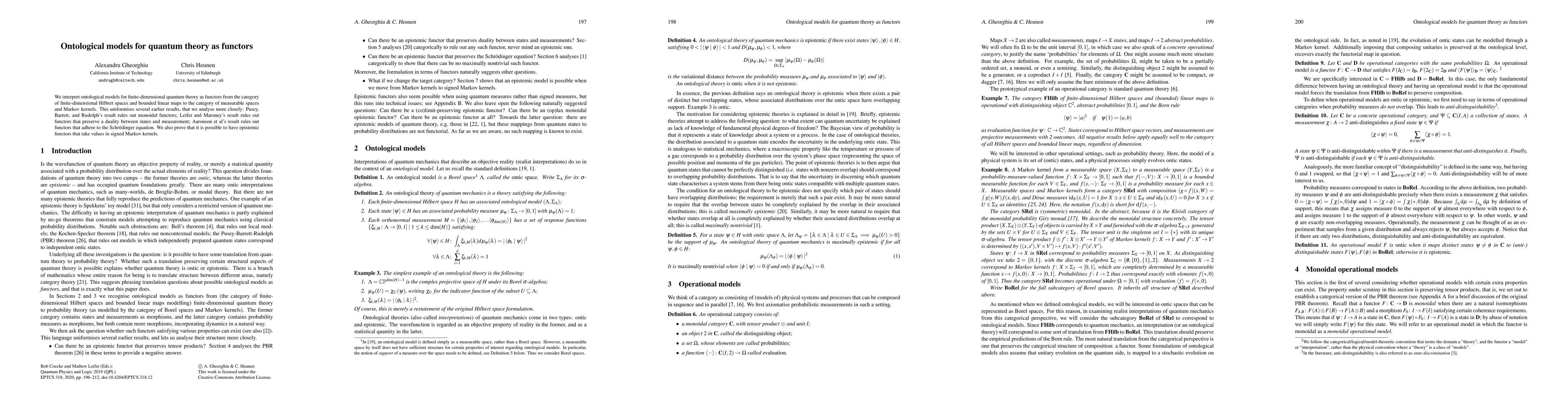 We interpret ontological models for finite-dimensional quantum theory as functors from the category of finite-dimensional Hilbert spaces and bounded linear maps to the category of measurable spaces and Markov kernels. This uniformises several earlier results, that we analyse more closely: Pusey, Barrett, and Rudolph's result rules out monoidal functors; Leifer and Maroney's result rules out functors that preserve a duality between states and measurement; Aaronson et al's result rules out functors that adhere to the Schr\"odinger equation. We also prove that it is possible to have epistemic functors that take values in signed Markov kernels.