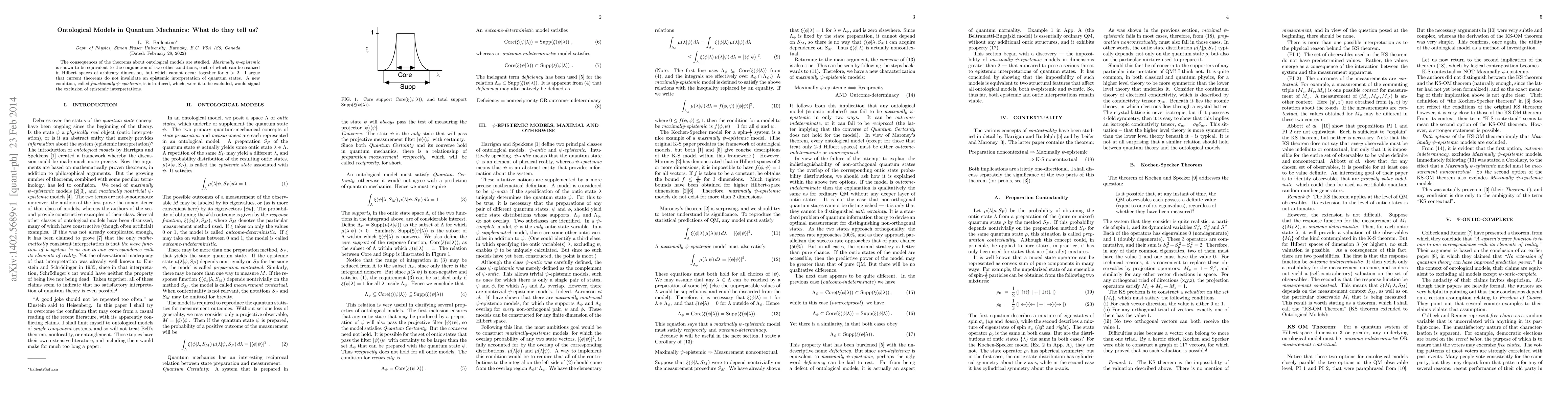 The paper explores conditions for ontological models in quantum mechanics, showing 'maximally $psi$-epistemic' is equivalent to two conditions, each viable in any-dimensional Hilbert spaces but not together for d>2. The author argues current theorems don't disprove epistemic interpretations, introducing a new 'functionally $psi$-epistemic' condition whose exclusion would rule out epistemic interpretations.