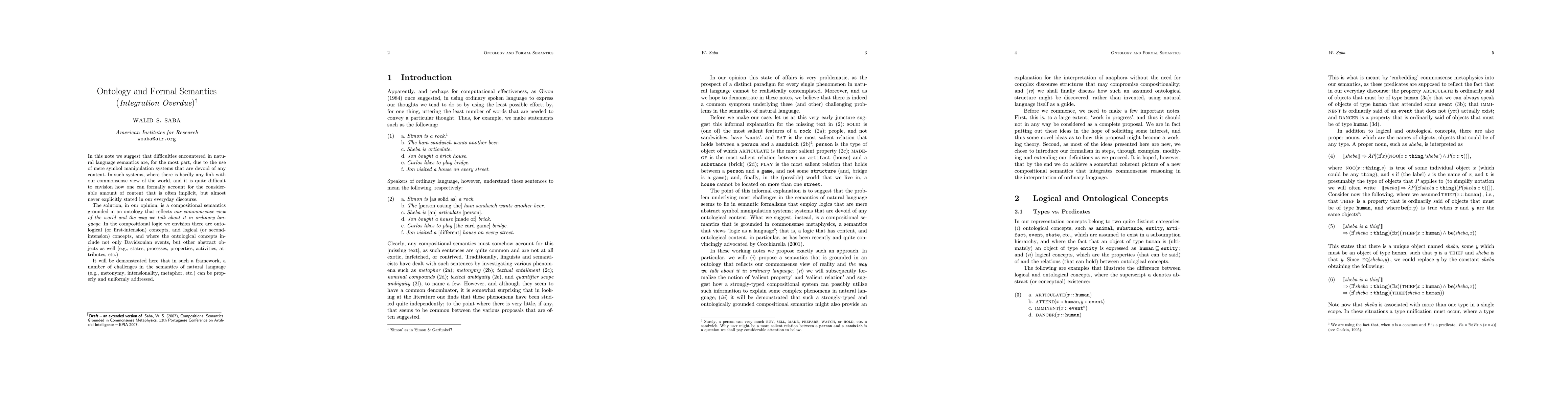 This paper argues that integrating ontology with formal semantics can resolve many issues in natural language interpretation by grounding compositional semantics in a commonsense ontology that includes abstract objects, thus addressing challenges like metonymy and intensionality.