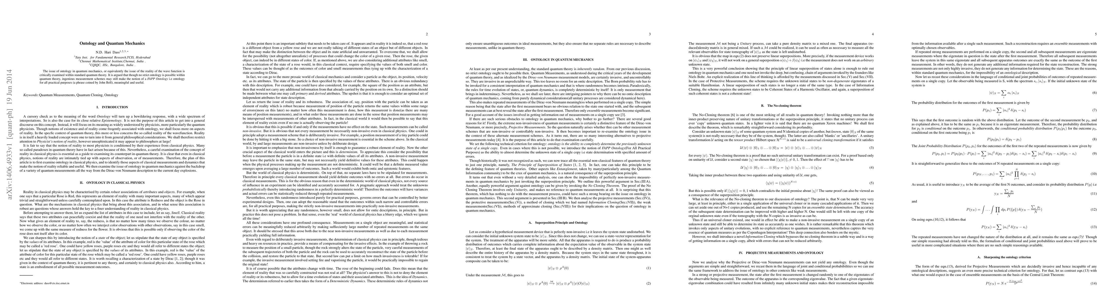 This paper critically examines the ontology in quantum mechanics, arguing that while strict ontology isn't feasible, practical measurement schemes can render the notion of a "FAPP Ontology" (ontology for all practical purposes) meaningful and useful, as proposed by John Bell.