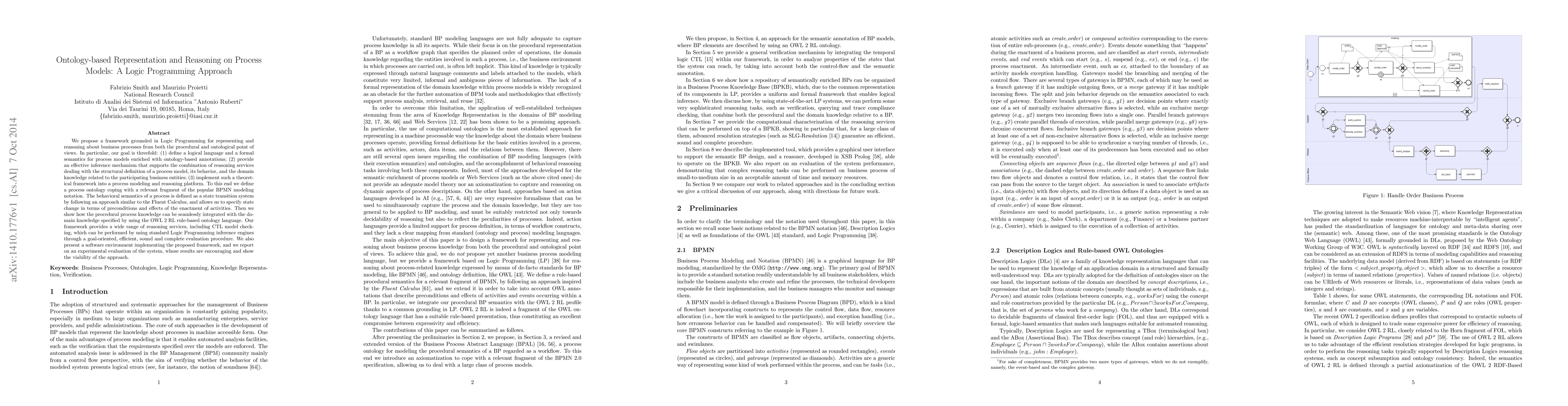 We propose a framework grounded in Logic Programming for representing and reasoning about business processes from both the procedural and ontological point of views. In particular, our goal is threefold: (1) define a logical language and a formal semantics for process models enriched with ontology-based annotations; (2) provide an effective inference mechanism that supports the combination of reasoning services dealing with the structural definition of a process model, its behavior, and the domain knowledge related to the participating business entities; (3) implement such a theoretical framework into a process modeling and reasoning platform. To this end we define a process ontology coping with a relevant fragment of the popular BPMN modeling notation. The behavioral semantics of a process is defined as a state transition system by following an approach similar to the Fluent Calculus, and allows us to specify state change in terms of preconditions and effects of the enactment of activities. Then we show how the procedural process knowledge can be seamlessly integrated with the domain knowledge specified by using the OWL 2 RL rule-based ontology language. Our framework provides a wide range of reasoning services, including CTL model checking, which can be performed by using standard Logic Programming inference engines through a goal-oriented, efficient, sound and complete evaluation procedure. We also present a software environment implementing the proposed framework, and we report on an experimental evaluation of the system, whose results are encouraging and show the viability of the approach.