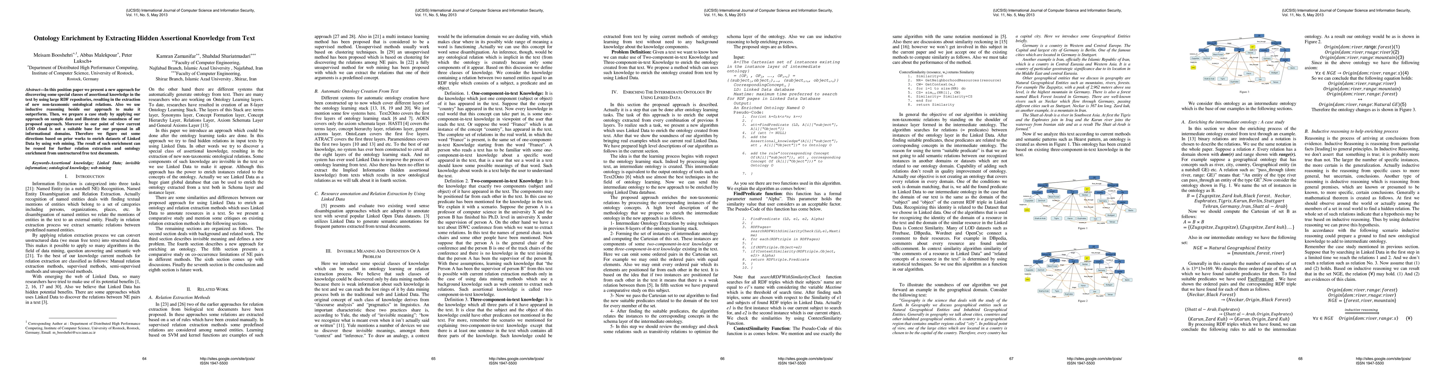 This paper proposes a method for extracting hidden assertional knowledge from text to enrich ontologies using large RDF repositories and inductive reasoning. The approach is demonstrated through a case study and suggests directions for enriching Linked Data datasets via web mining to improve relation extraction and ontology enrichment.