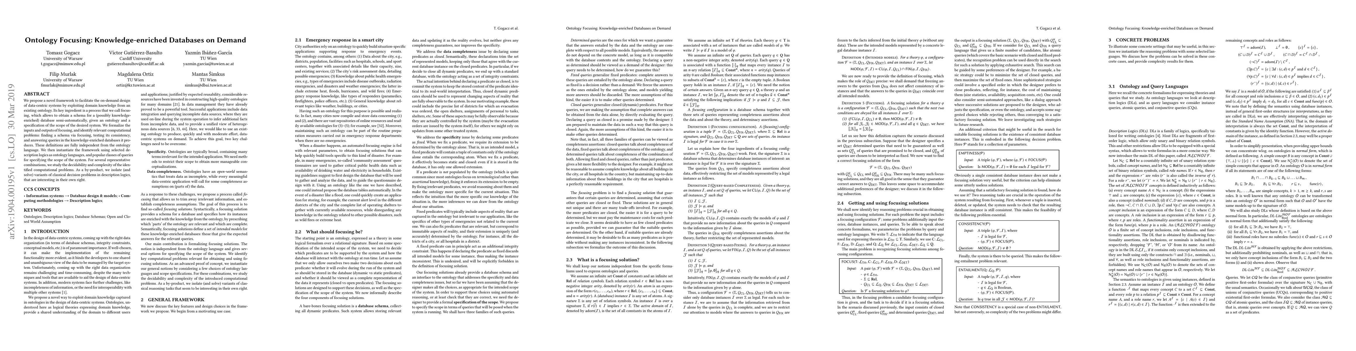 We propose a novel framework to facilitate the on-demand design of data-centric systems by exploiting domain knowledge from an existing ontology. Its key ingredient is a process that we call focusing, which allows to obtain a schema for a (possibly knowledge-enriched) database semi-automatically, given an ontology and a specification of the scope of the desired system. We formalize the inputs and outputs of focusing, and identify relevant computational problems: finding a schema via focusing, testing its consistency, and answering queries in the knowledge-enriched databases it produces. These definitions are fully independent of the ontology language. We then instantiate the framework using selected description logics as ontology languages, and popular classes of queries for specifying the scope of the system. For several representative combinations, we study the decidability and complexity of the identified computational problems. As a by-product, we isolate (and solve) variants of classical decision problems in description logics, that are interesting in their own right.