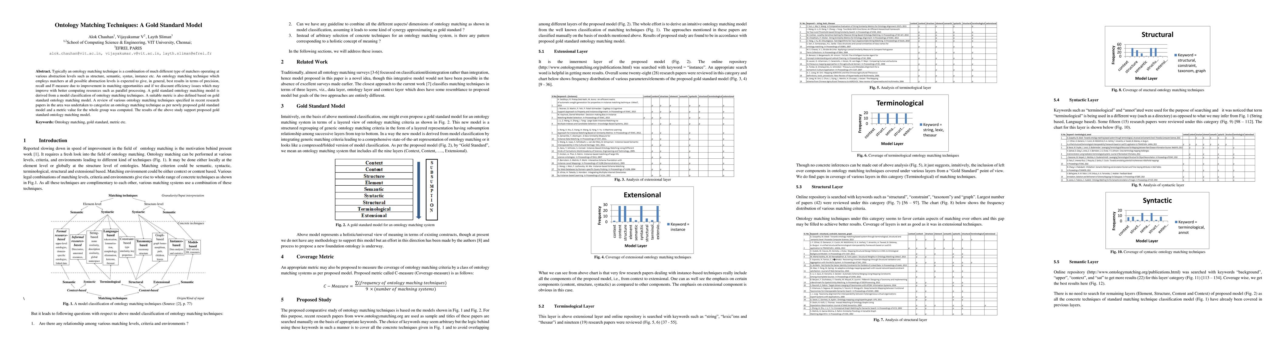 This paper proposes a gold standard model for ontology matching techniques, combining various matchers at different abstraction levels to enhance precision, recall, and F-measure. A metric is defined based on this model, and a review of recent research categorizes existing techniques, supporting the proposed gold standard model.